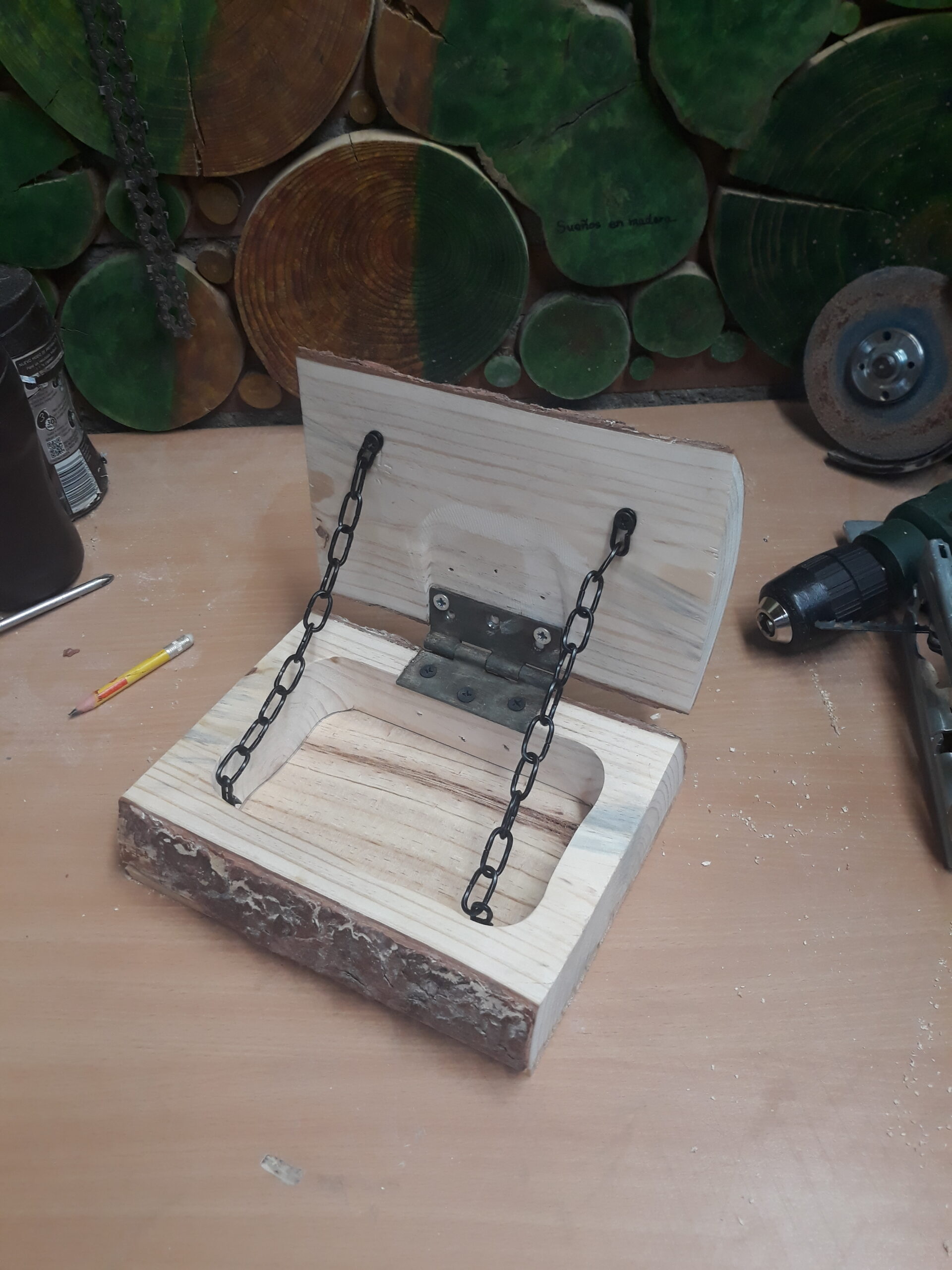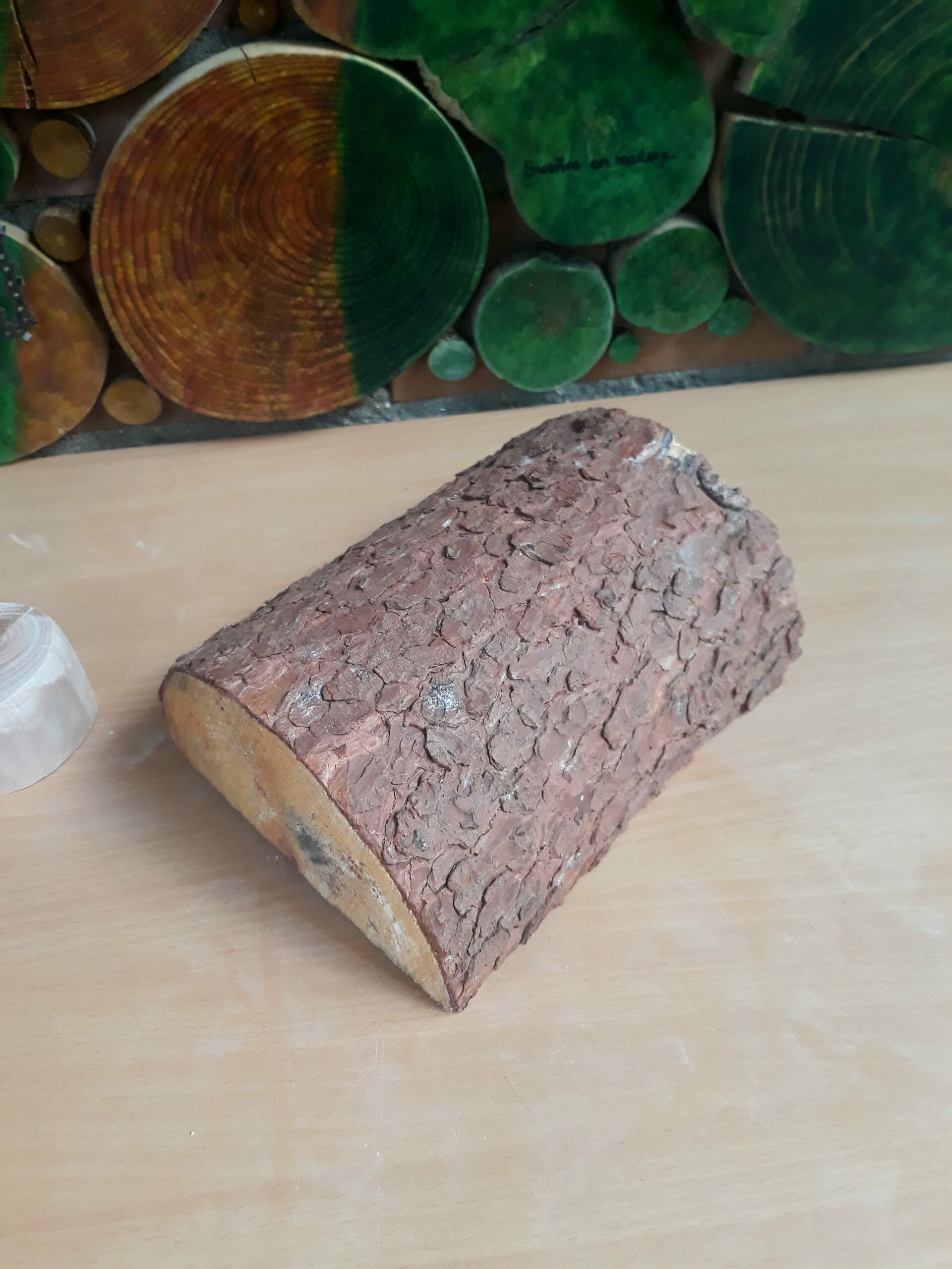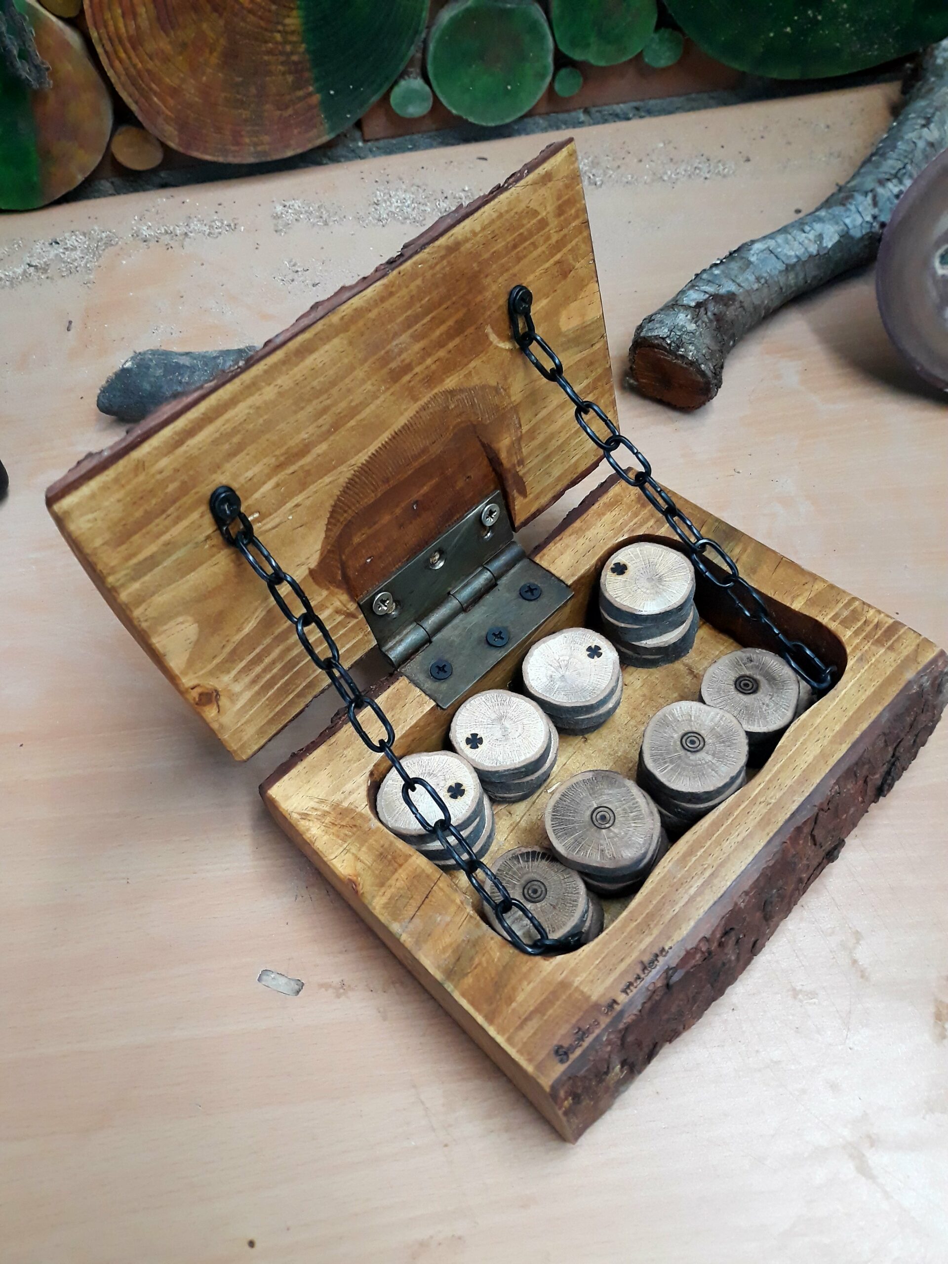De este trocito de tronco salió esta cajita para un juego de damas, sin duda una cajita única y a capricho.