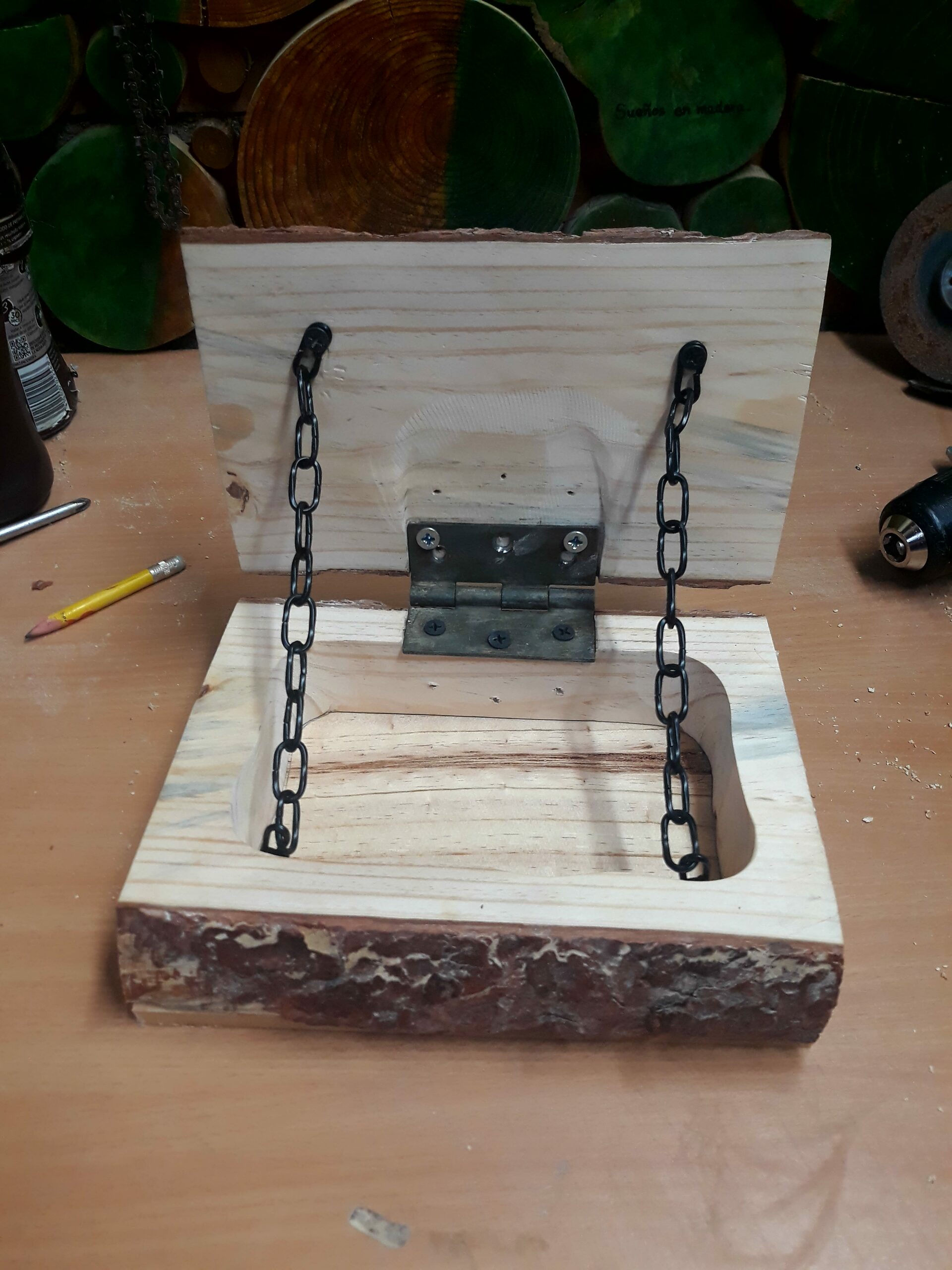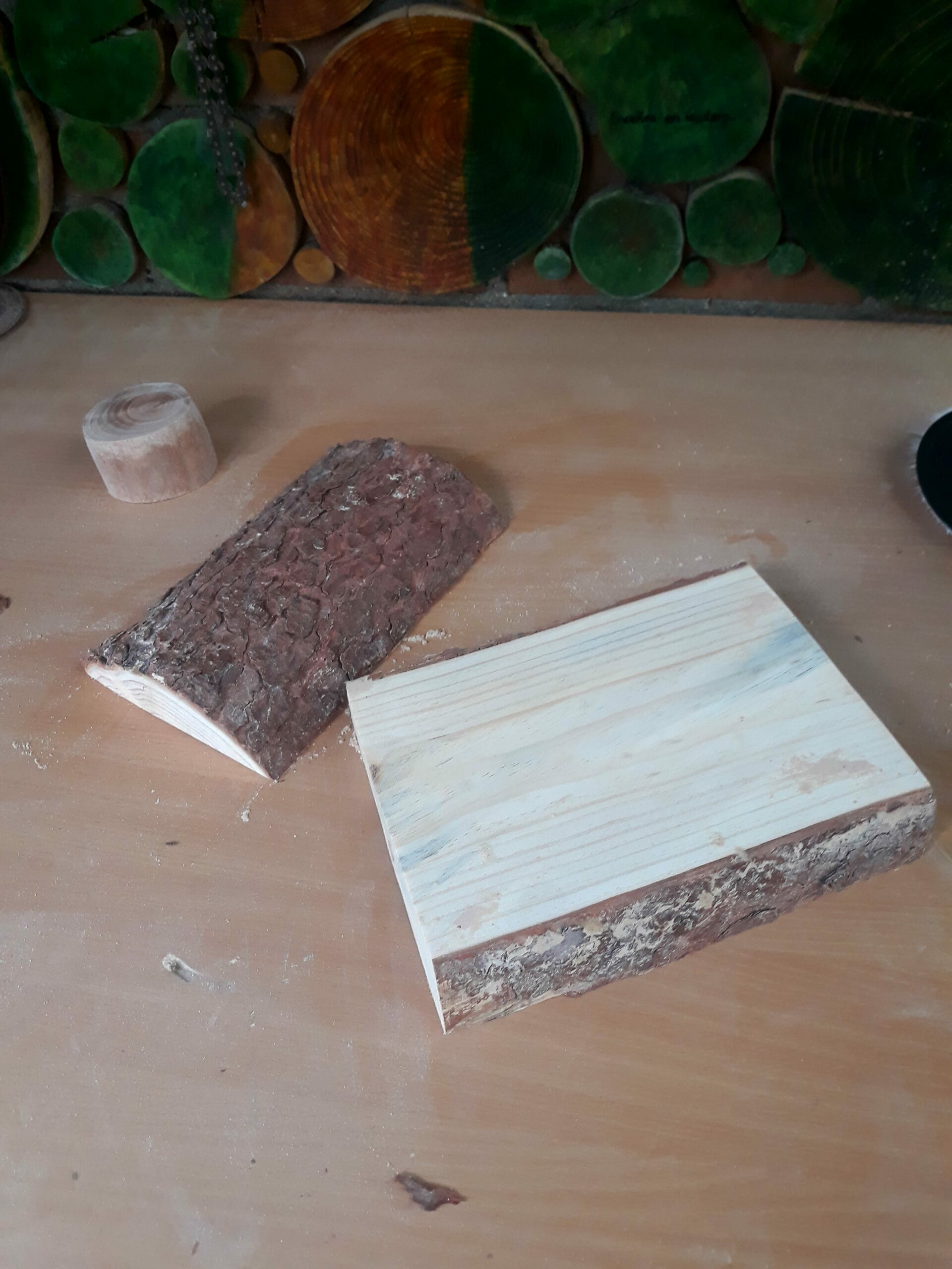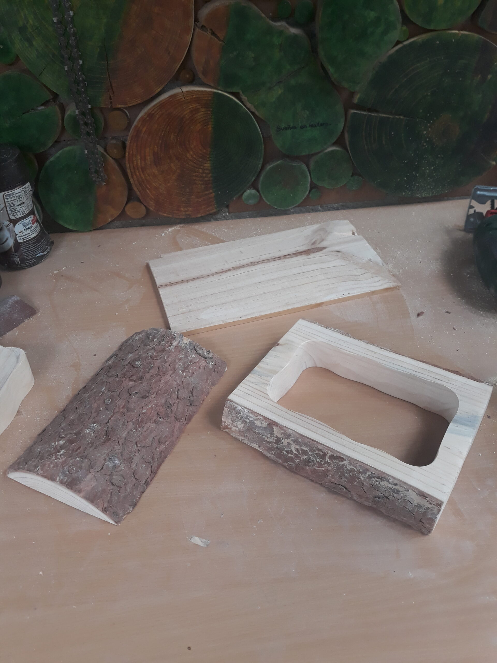 De este trocito de tronco salió esta cajita para un juego de damas, sin duda una cajita única y a capricho.