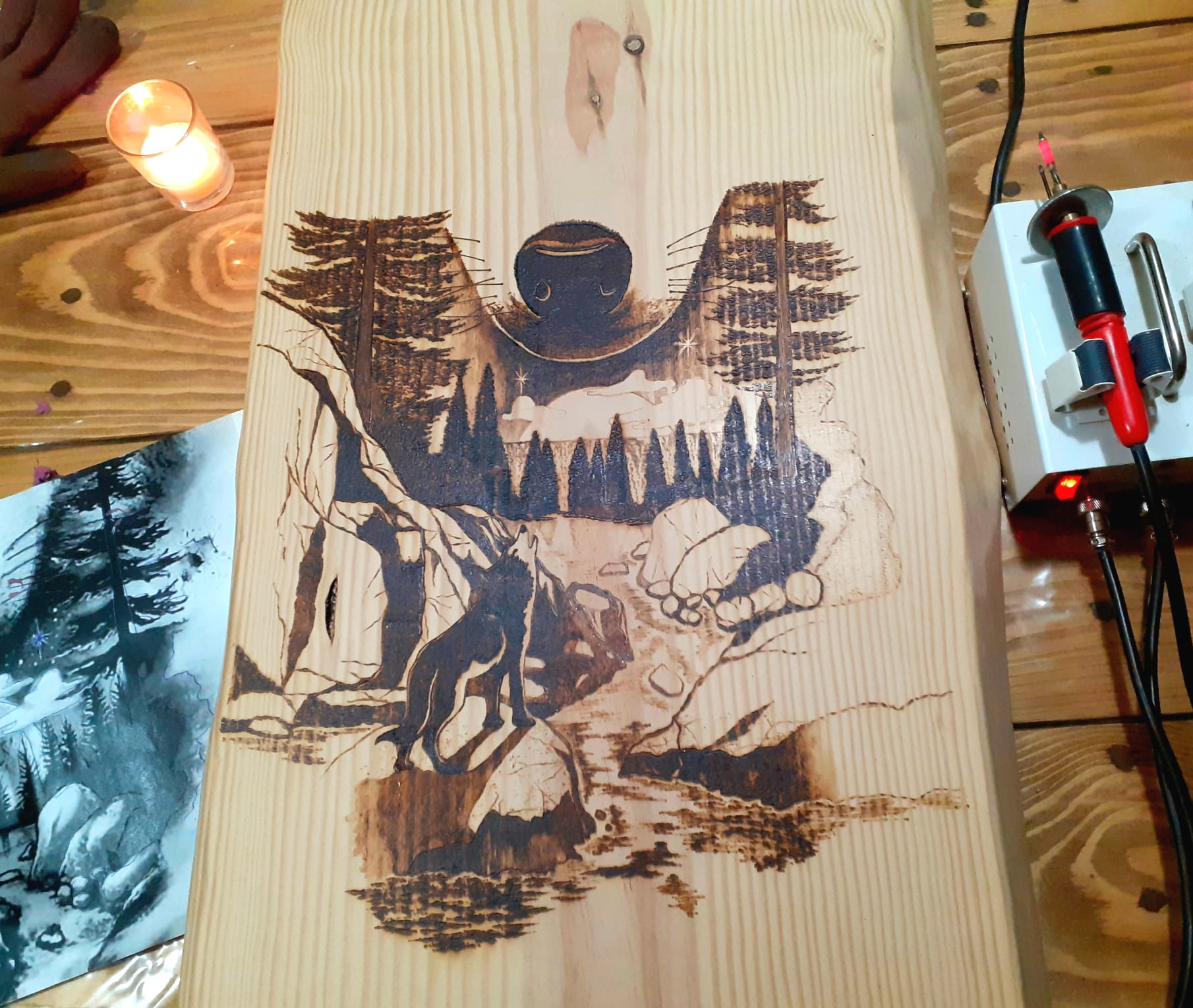 Casi tres días de muchas horas dibujando a fuego esta imagen preciosa, fue un largo trabajo pero disfruté cada centímetro.