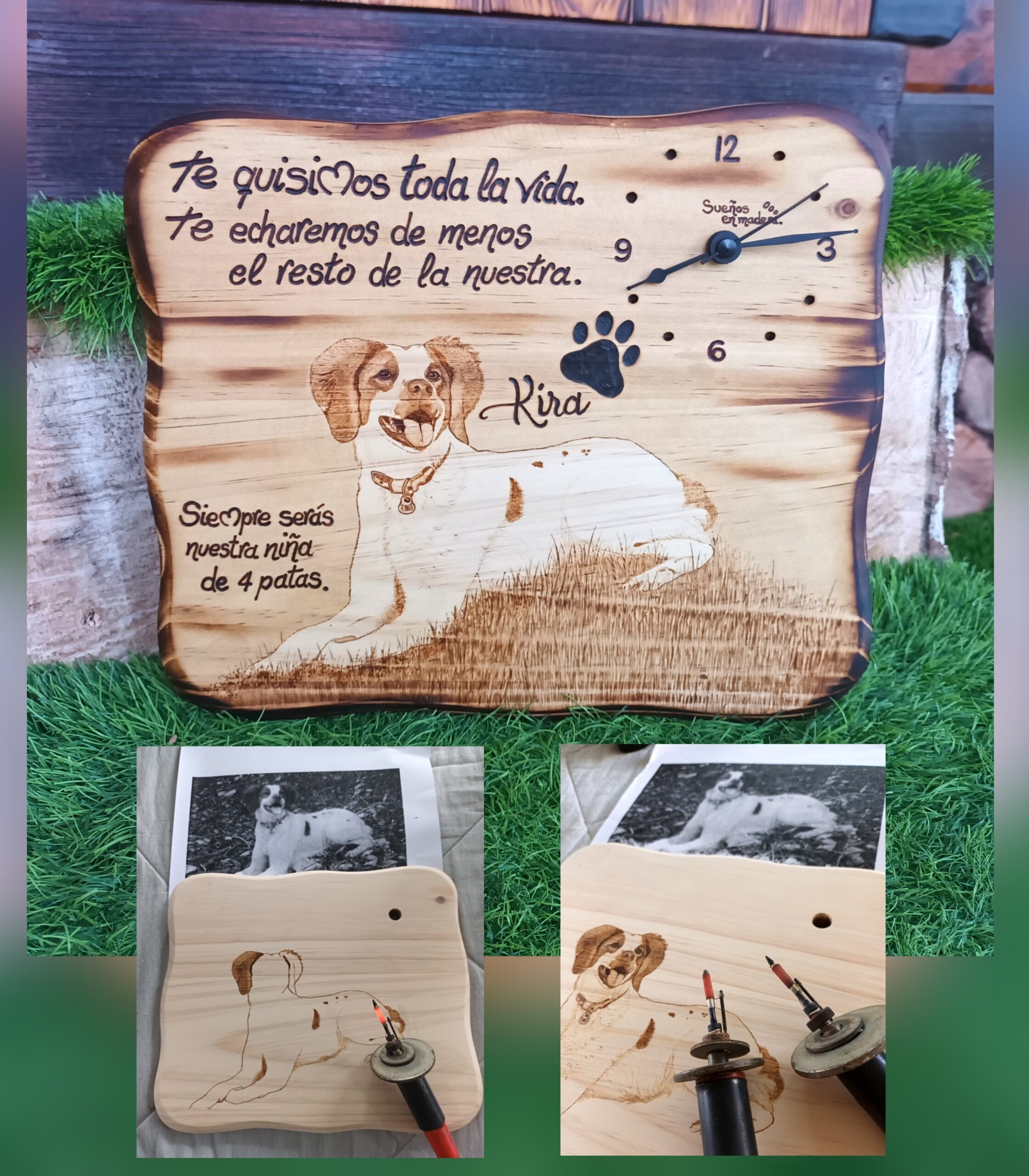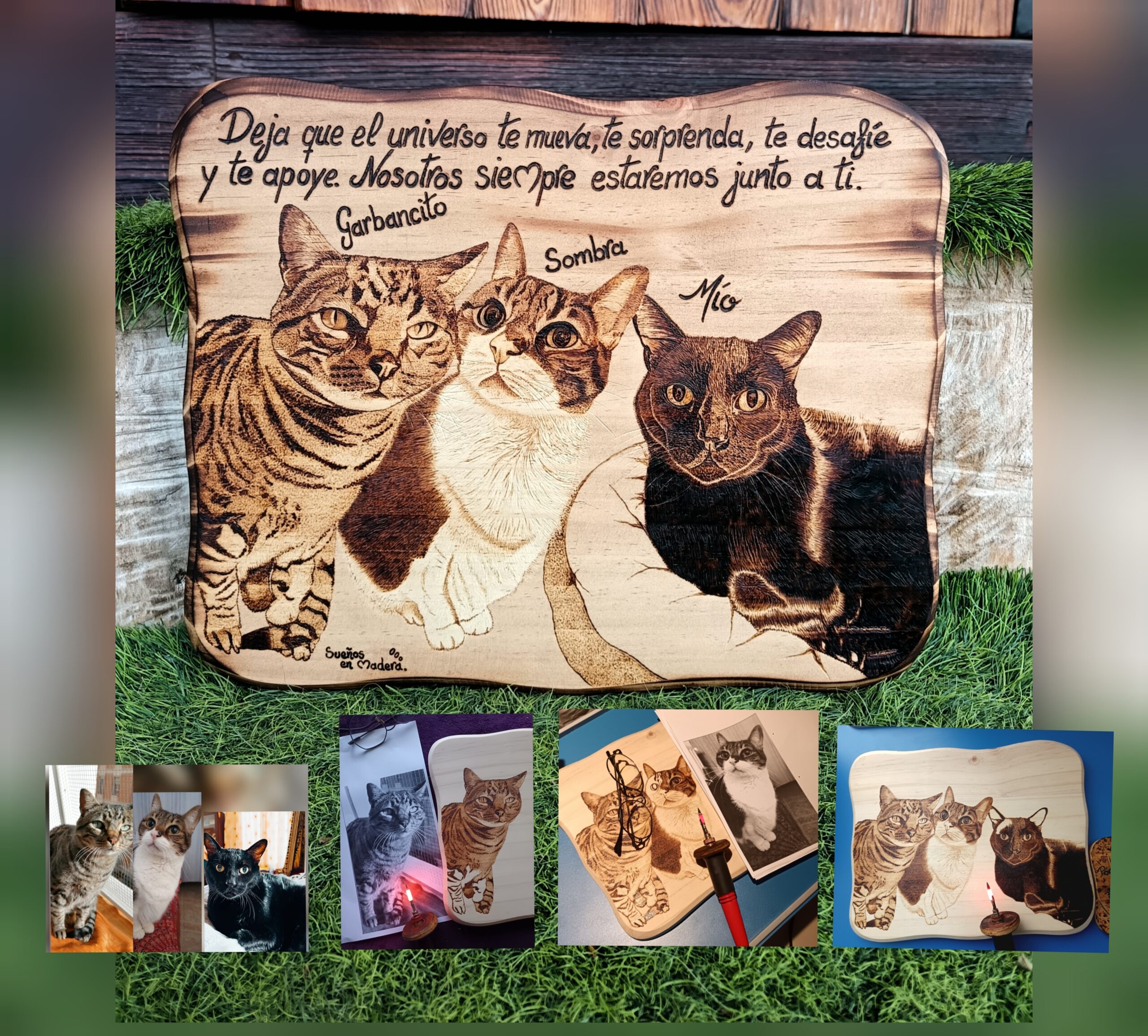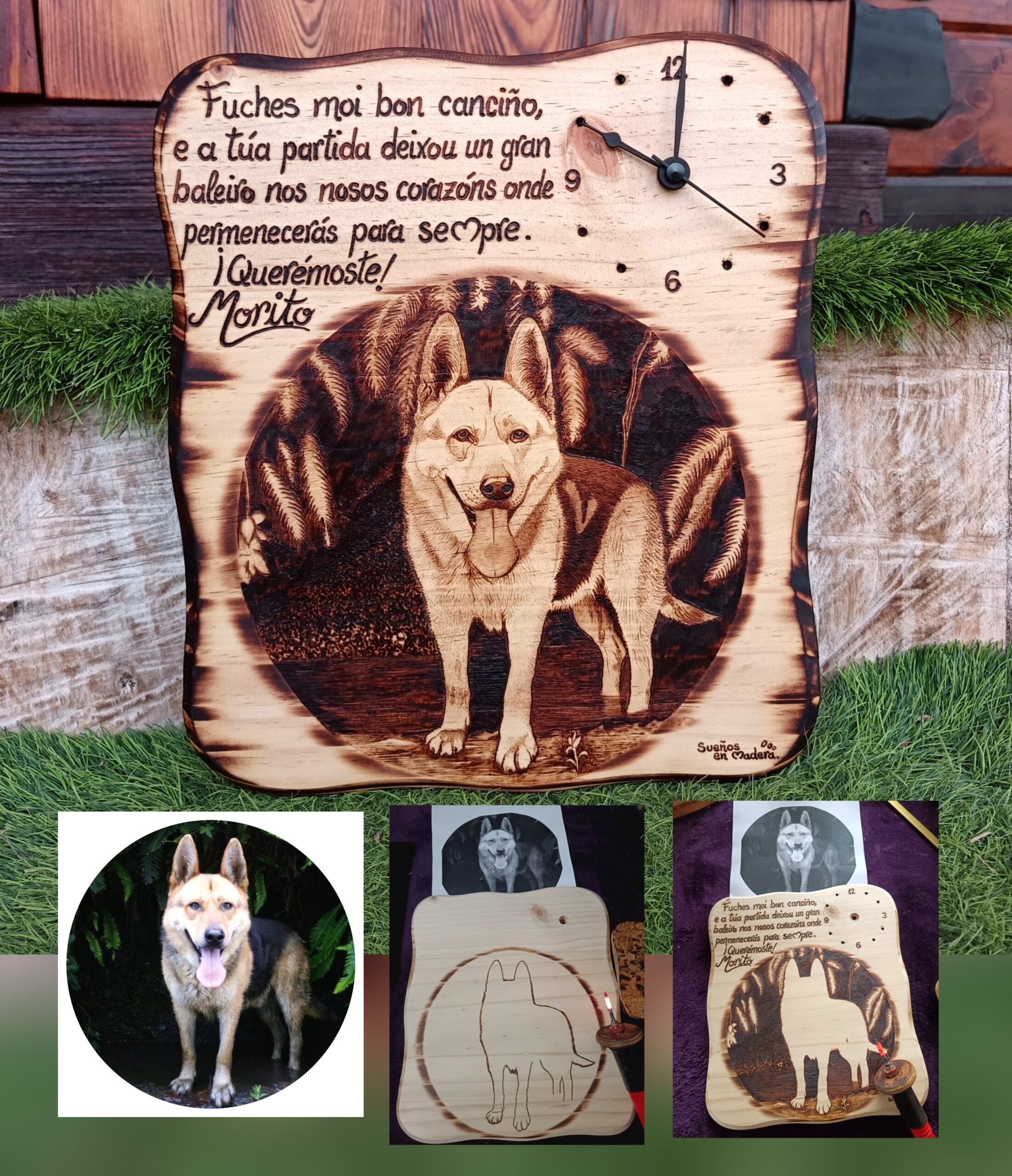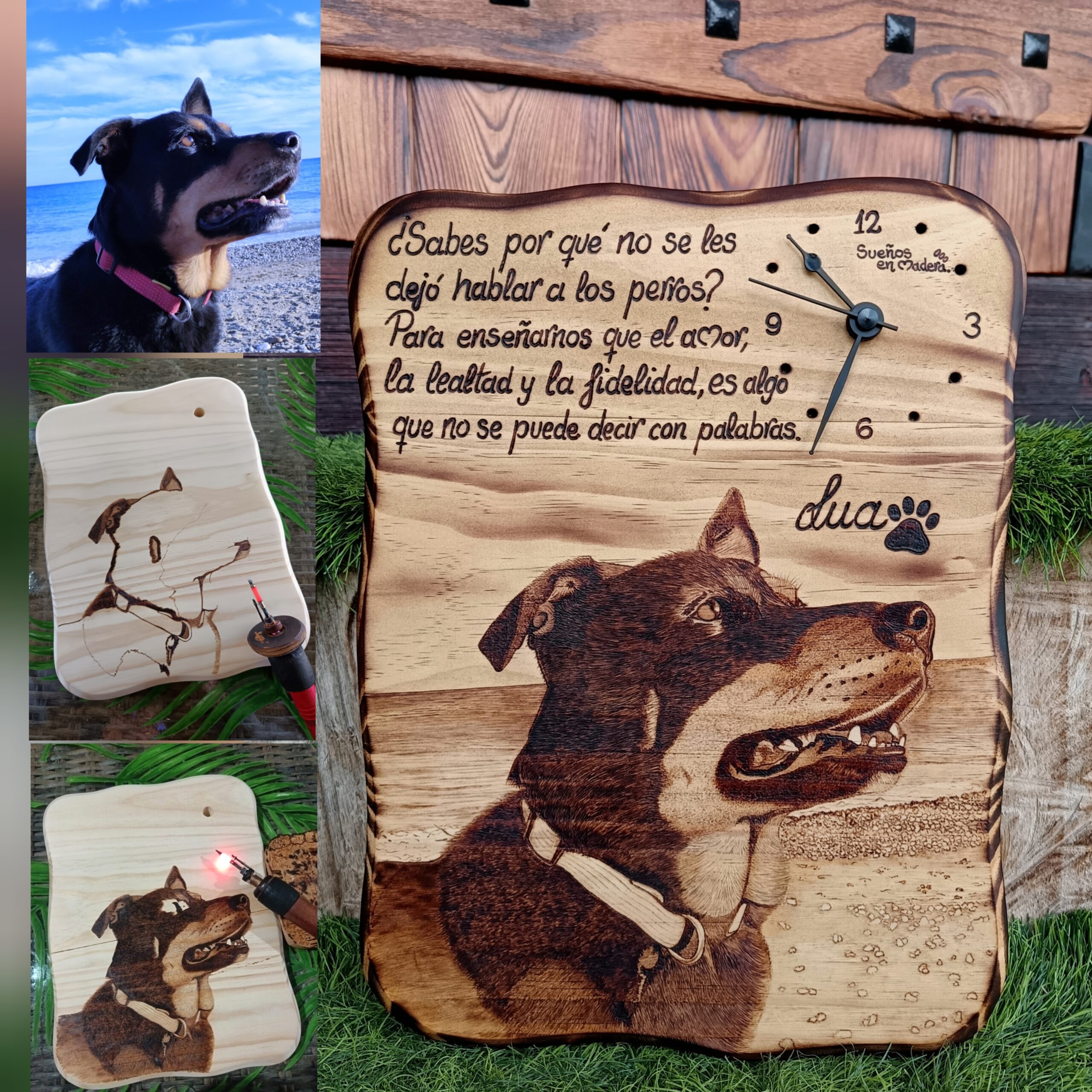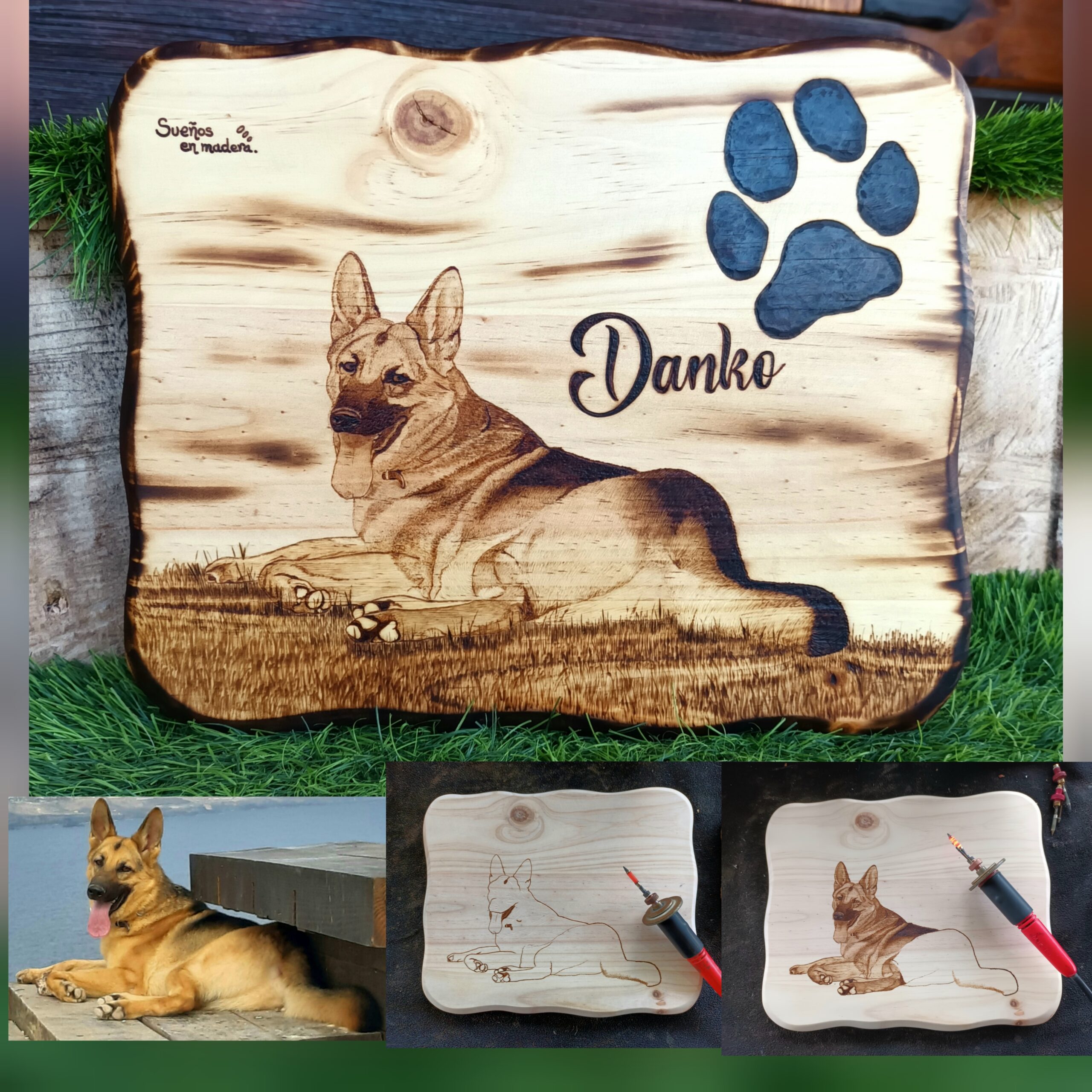 Un recuerdo único y emotivo: el retrato de tu mascota dibujado a fuego, con todo el detalle de nuestro pirograbado artesanal.