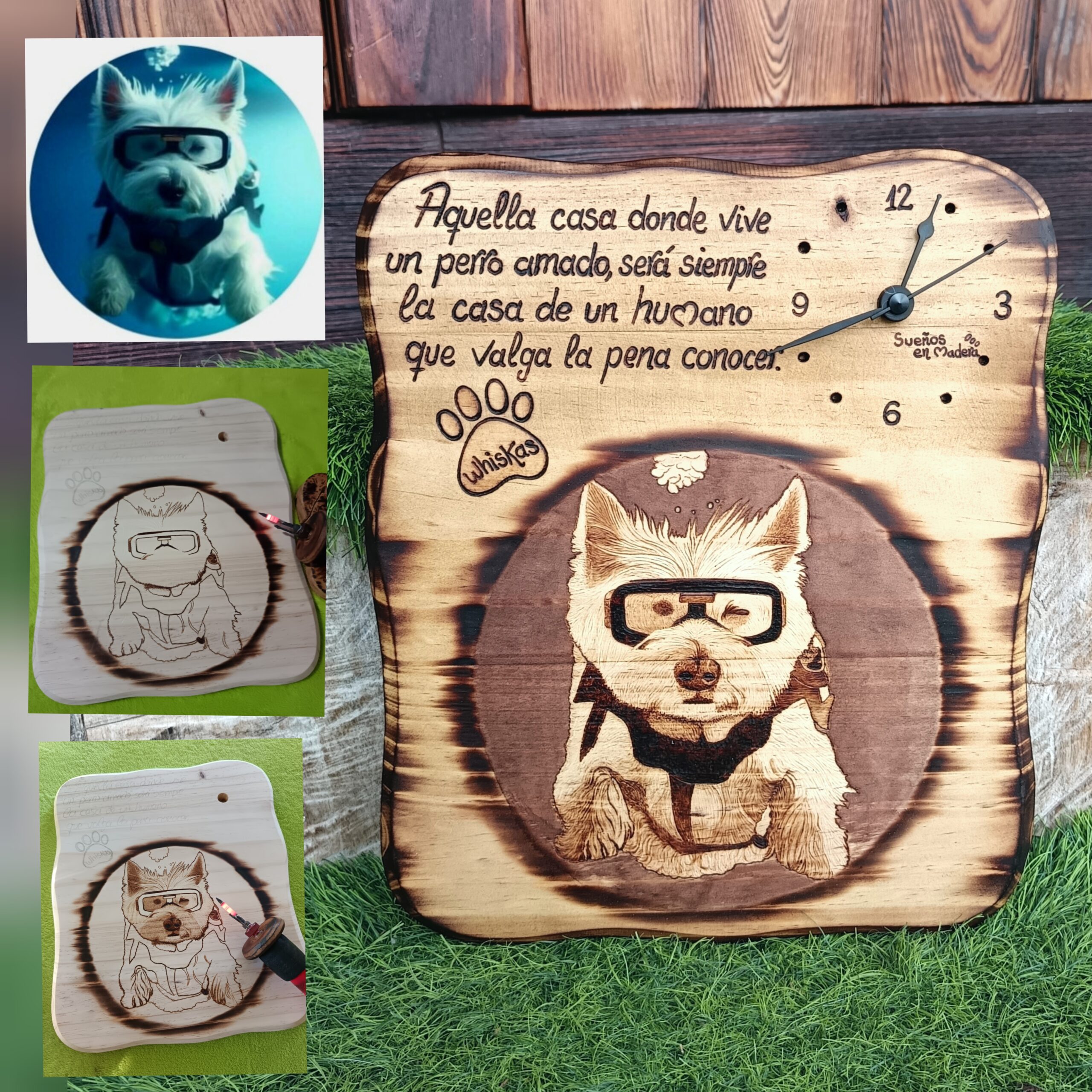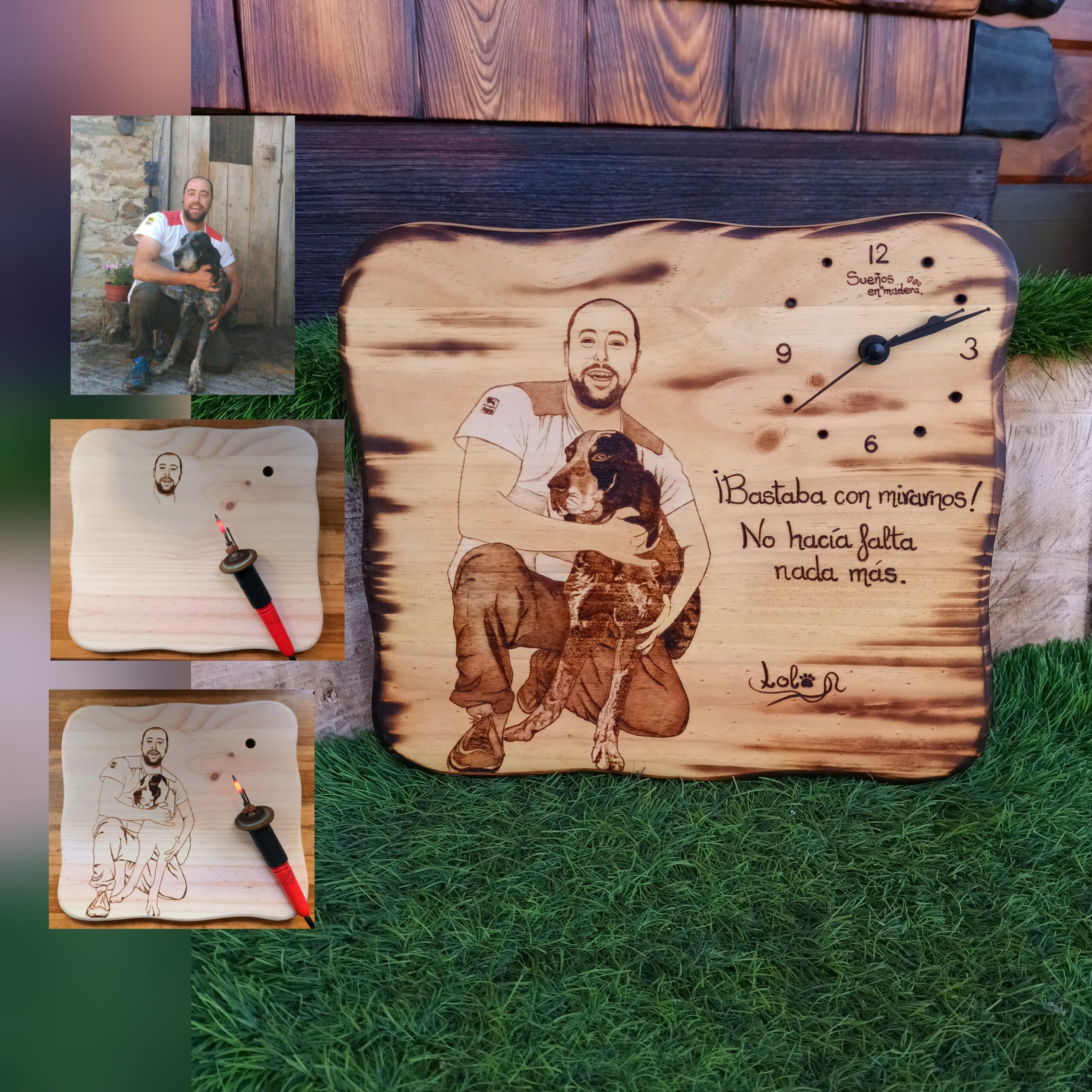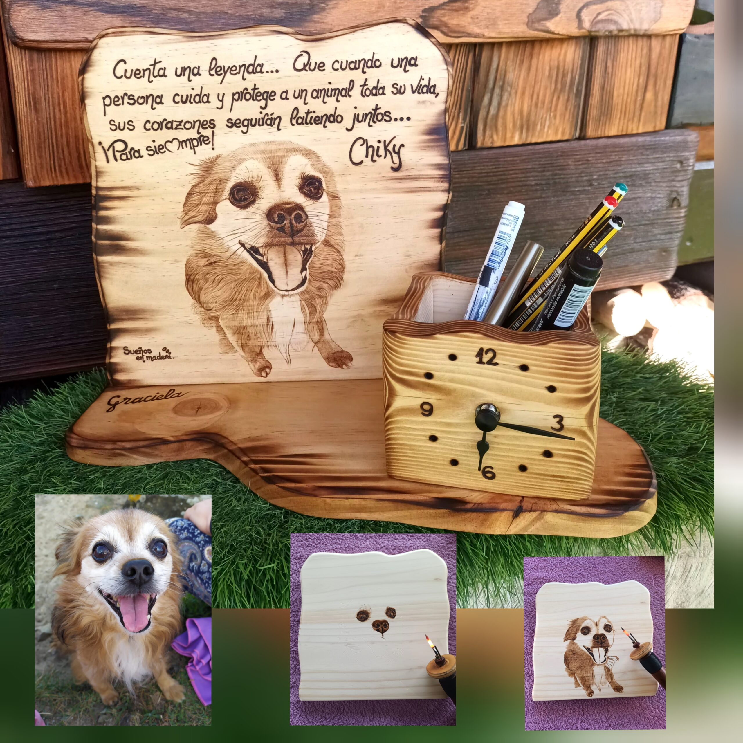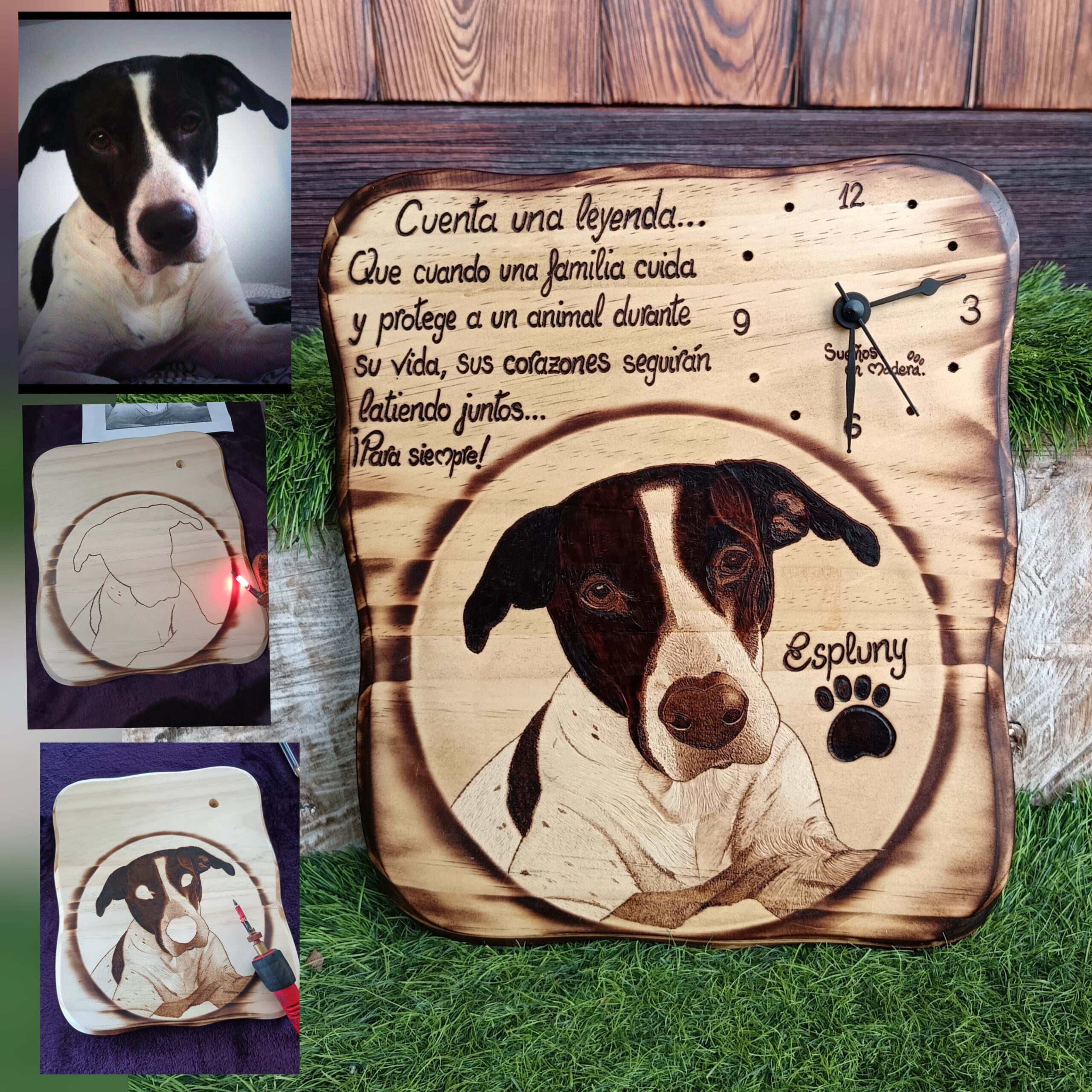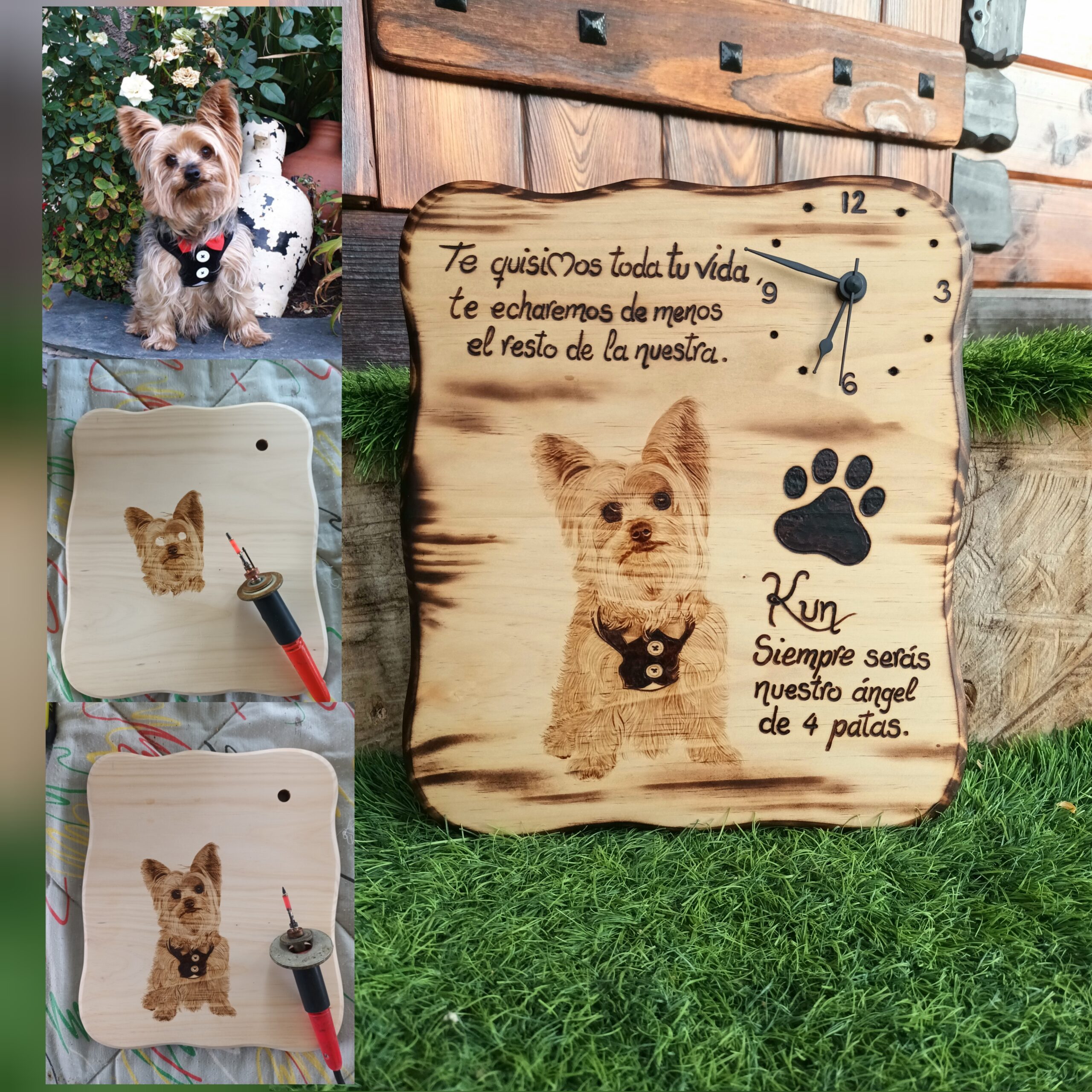 Un recuerdo único y emotivo: el retrato de tu mascota dibujado a fuego, con todo el detalle de nuestro pirograbado artesanal.