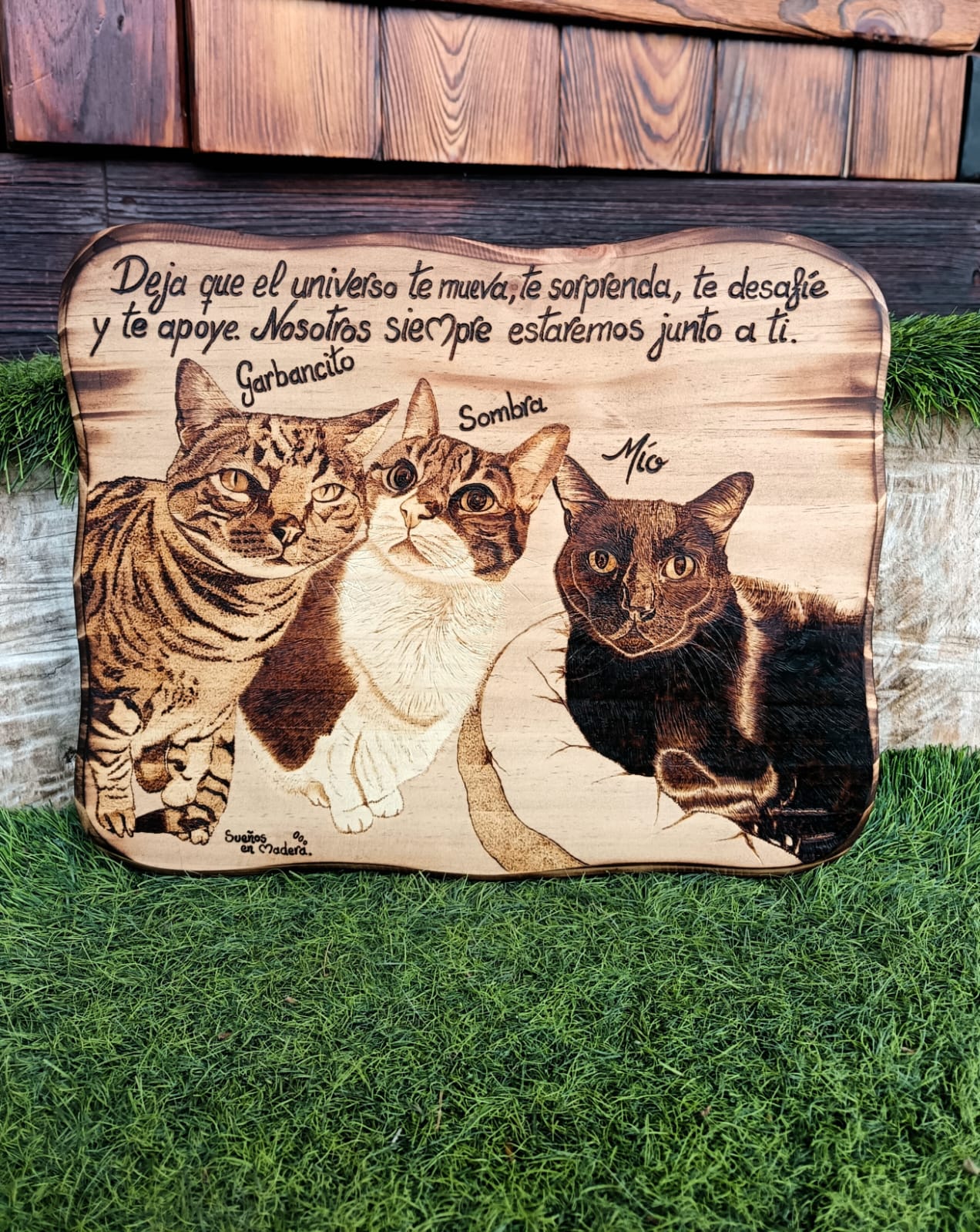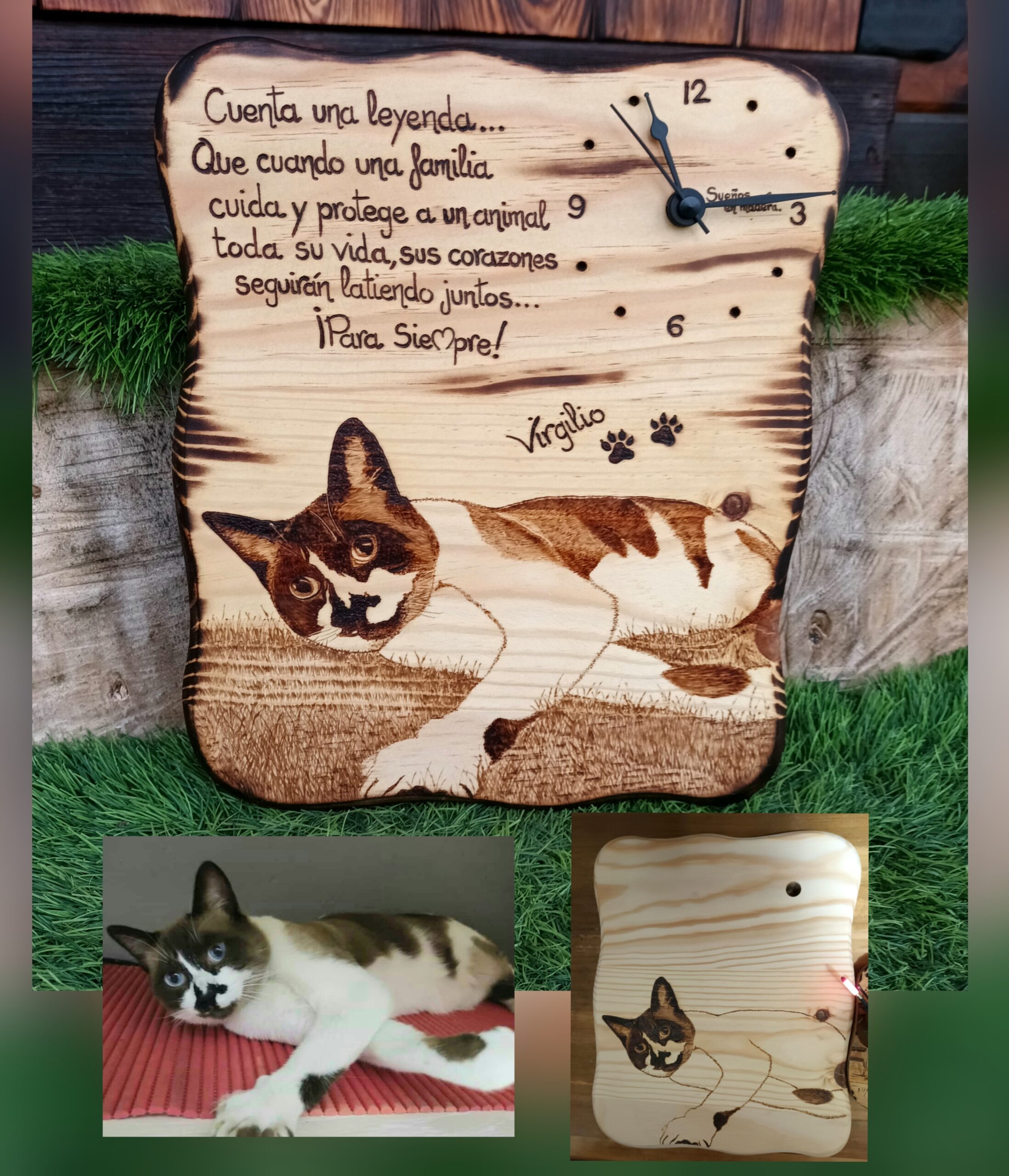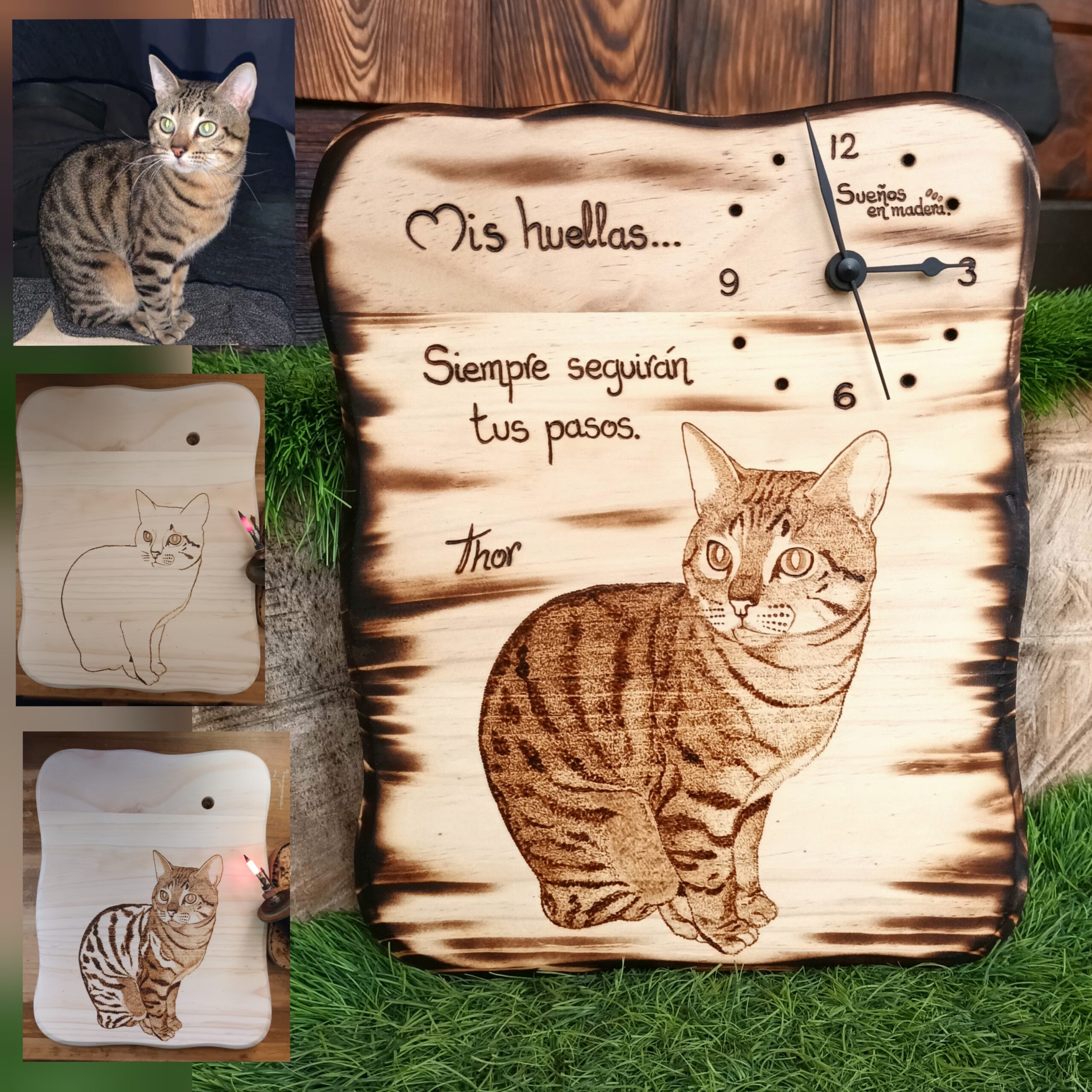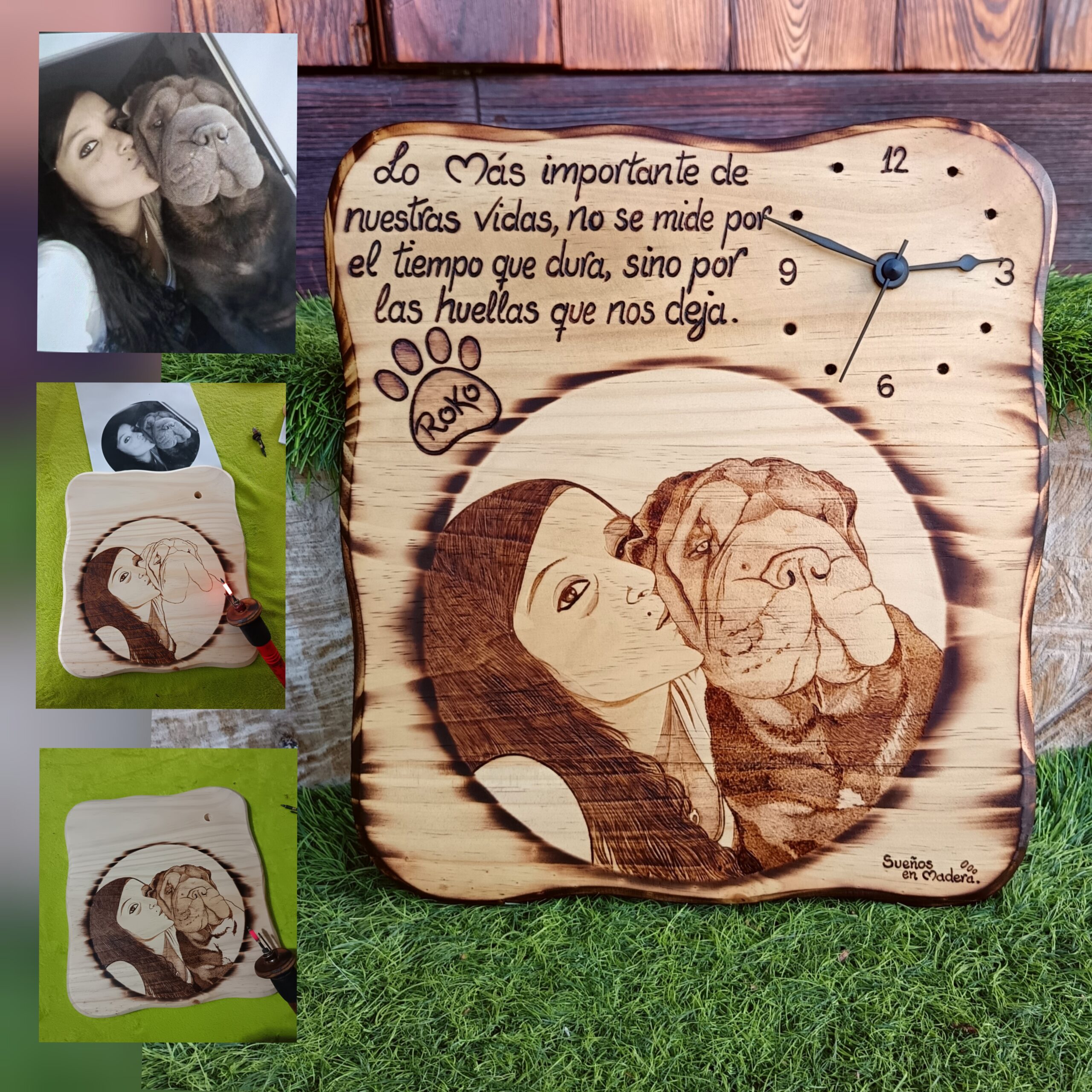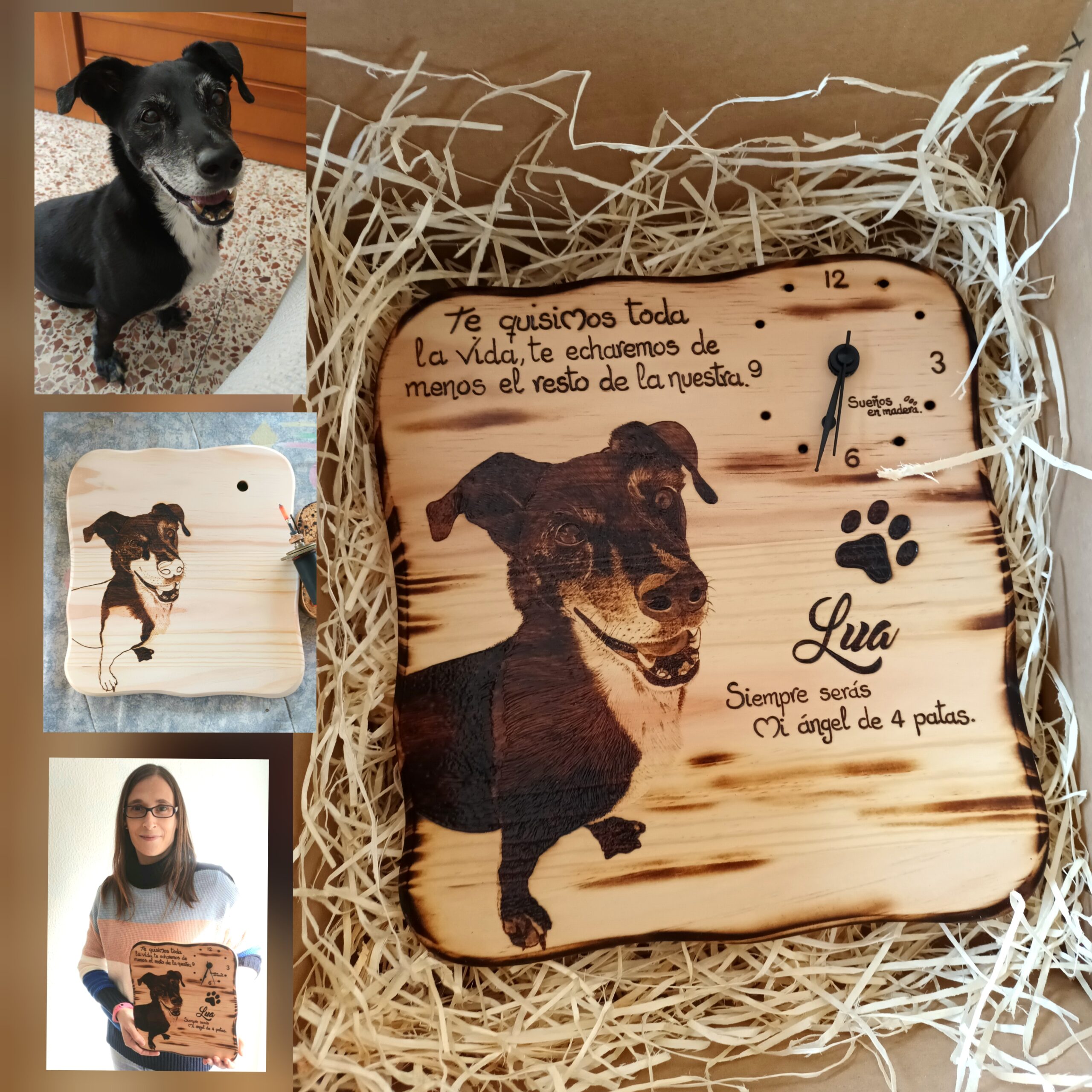Un recuerdo único y emotivo: el retrato de tu mascota dibujado a fuego, con todo el detalle de nuestro pirograbado artesanal.