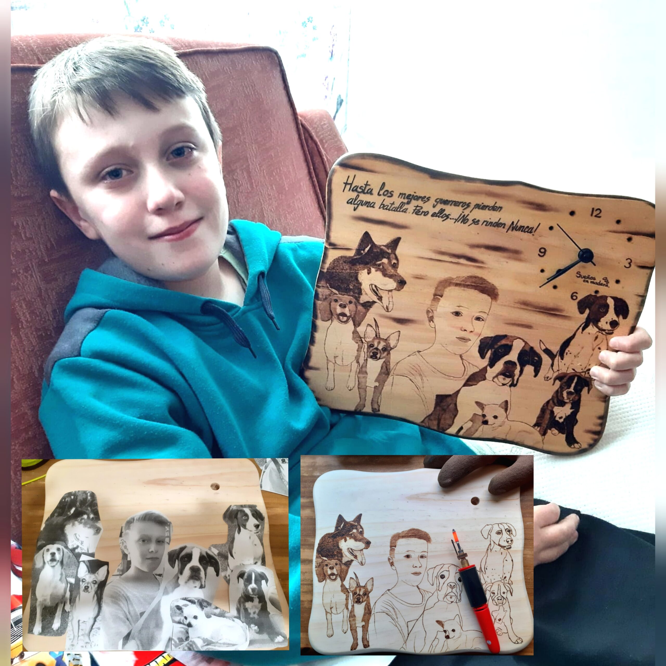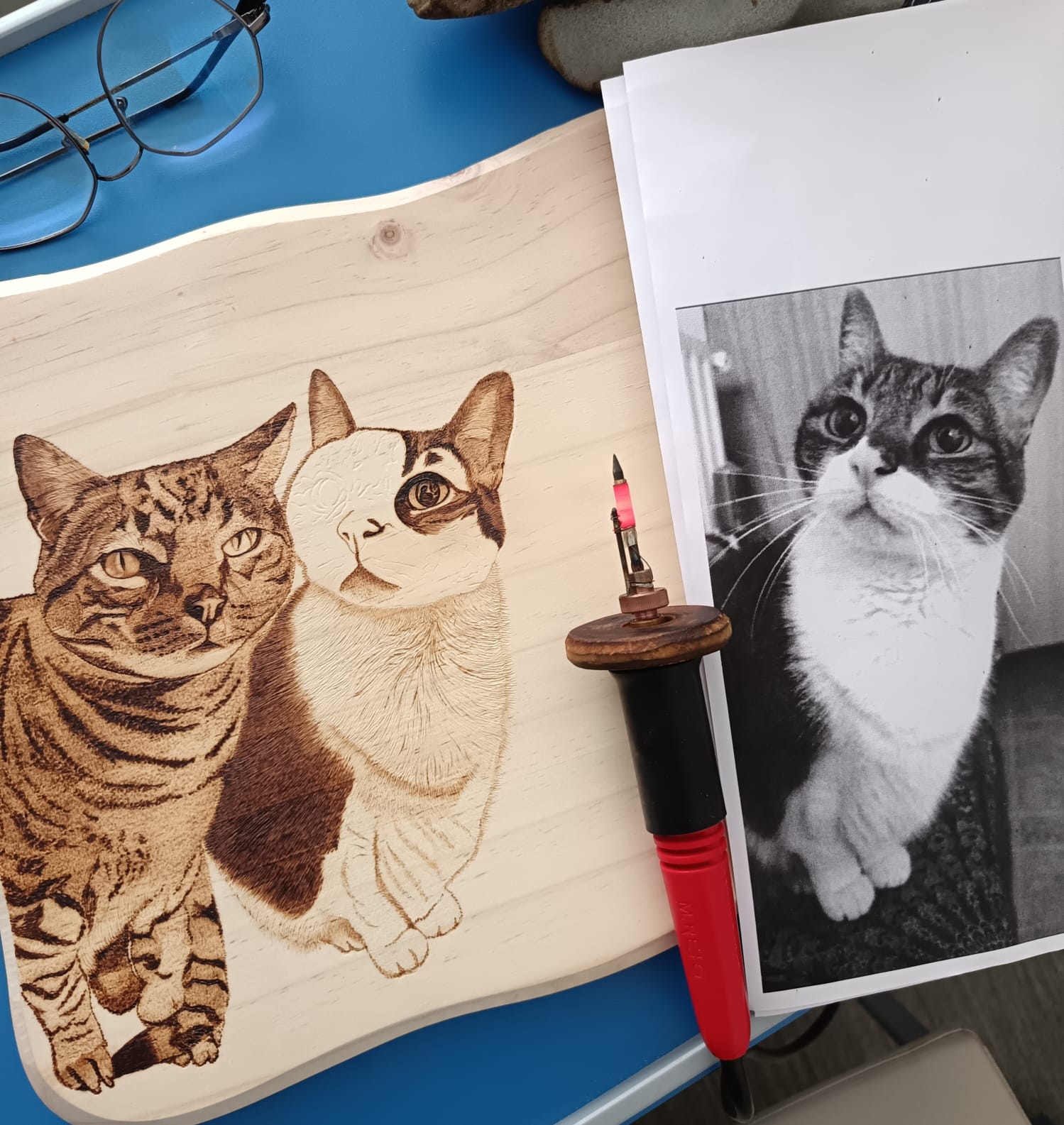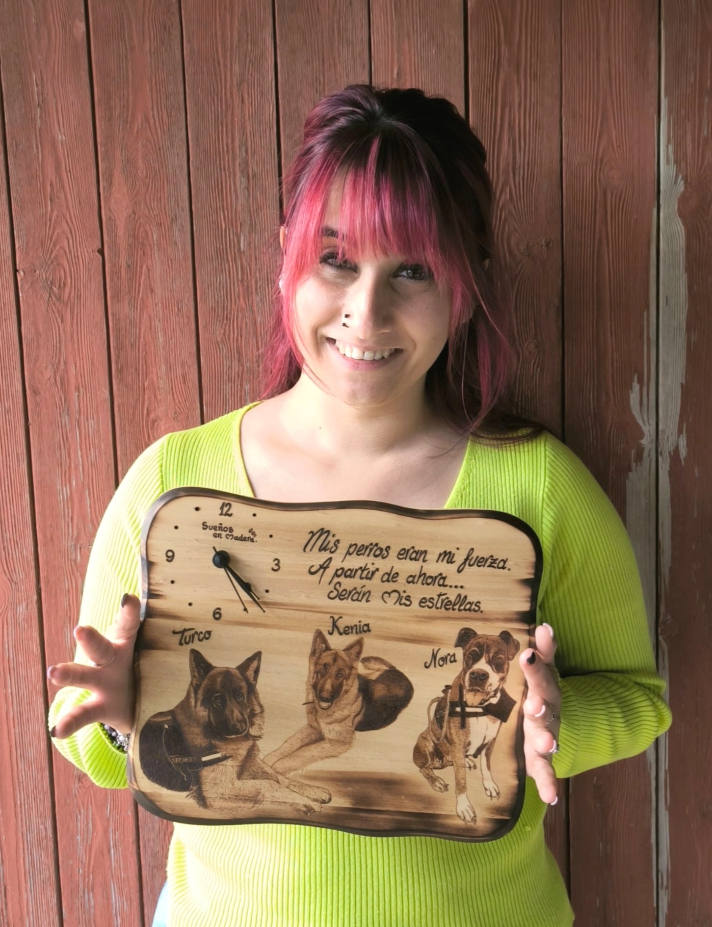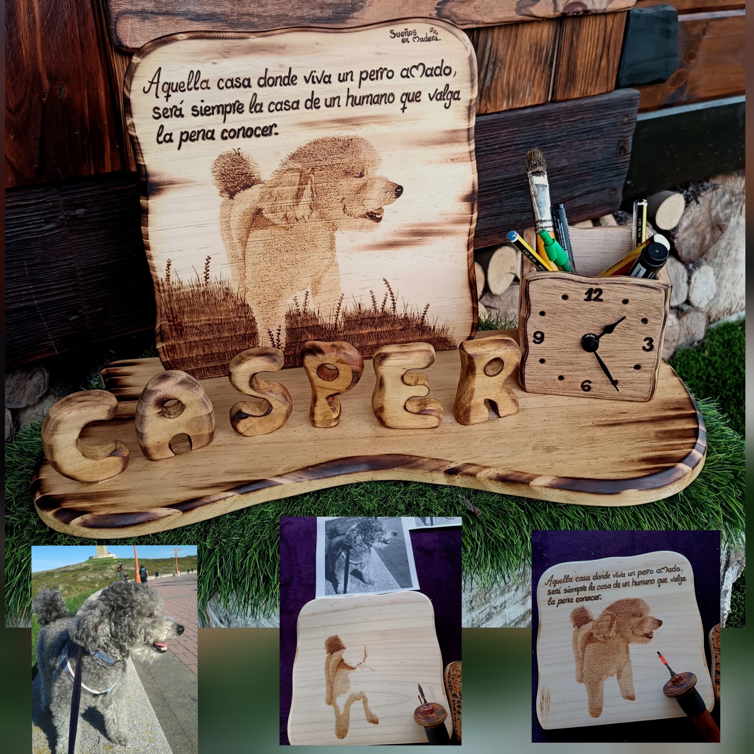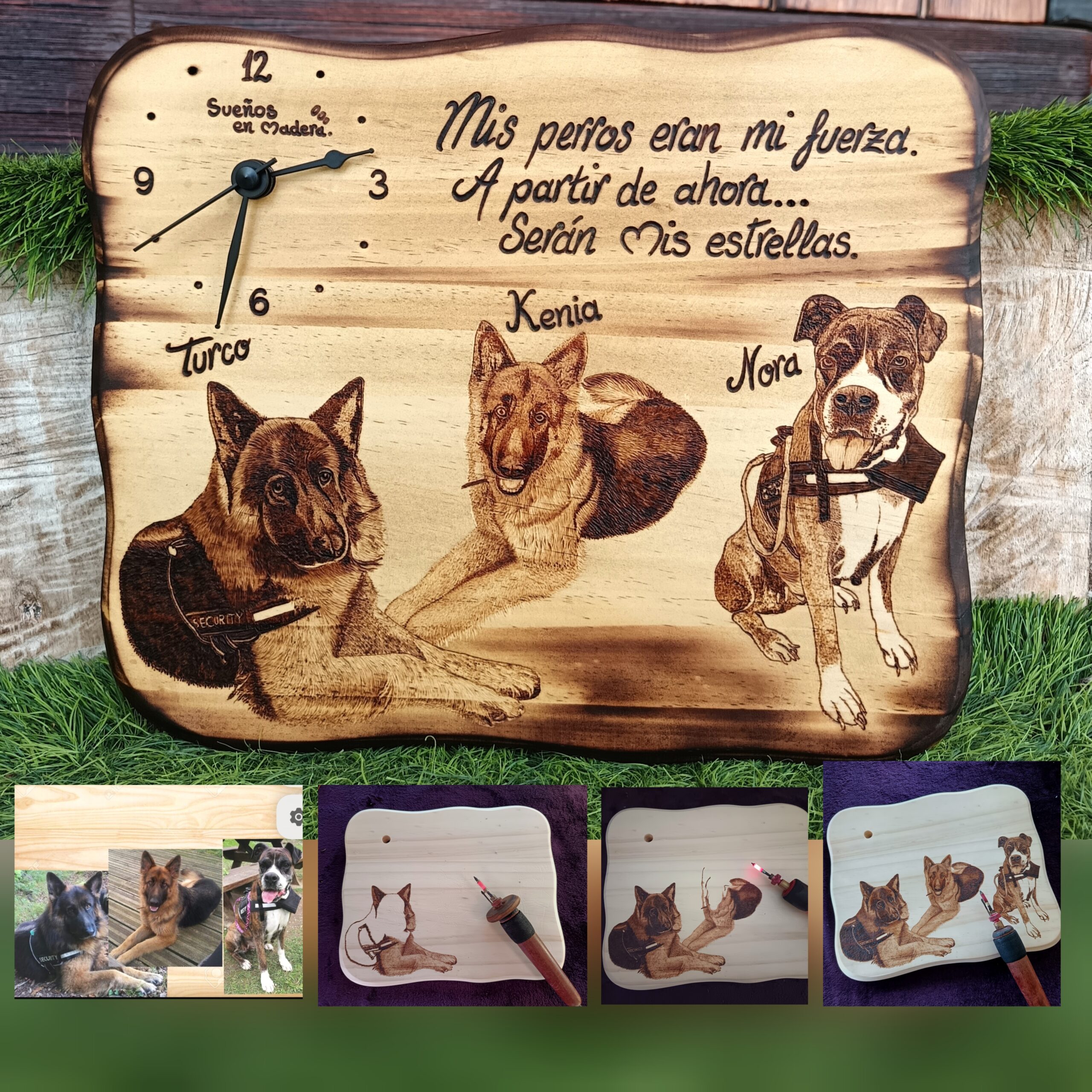 Un recuerdo único y emotivo: el retrato de tu mascota dibujado a fuego, con todo el detalle de nuestro pirograbado artesanal.