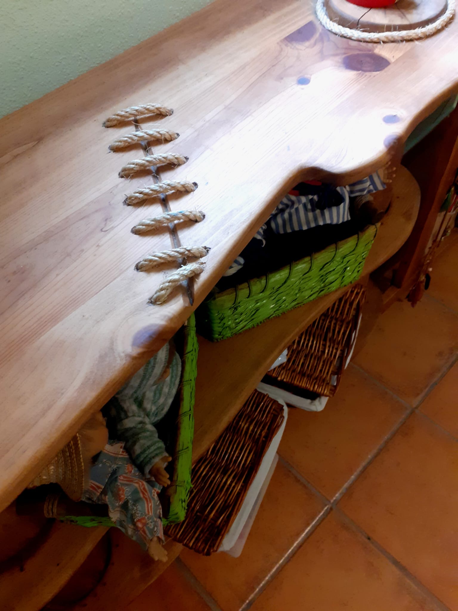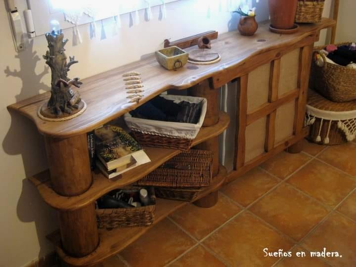 Un original zapatero o escritorio, o mueble de cuartito de estar.