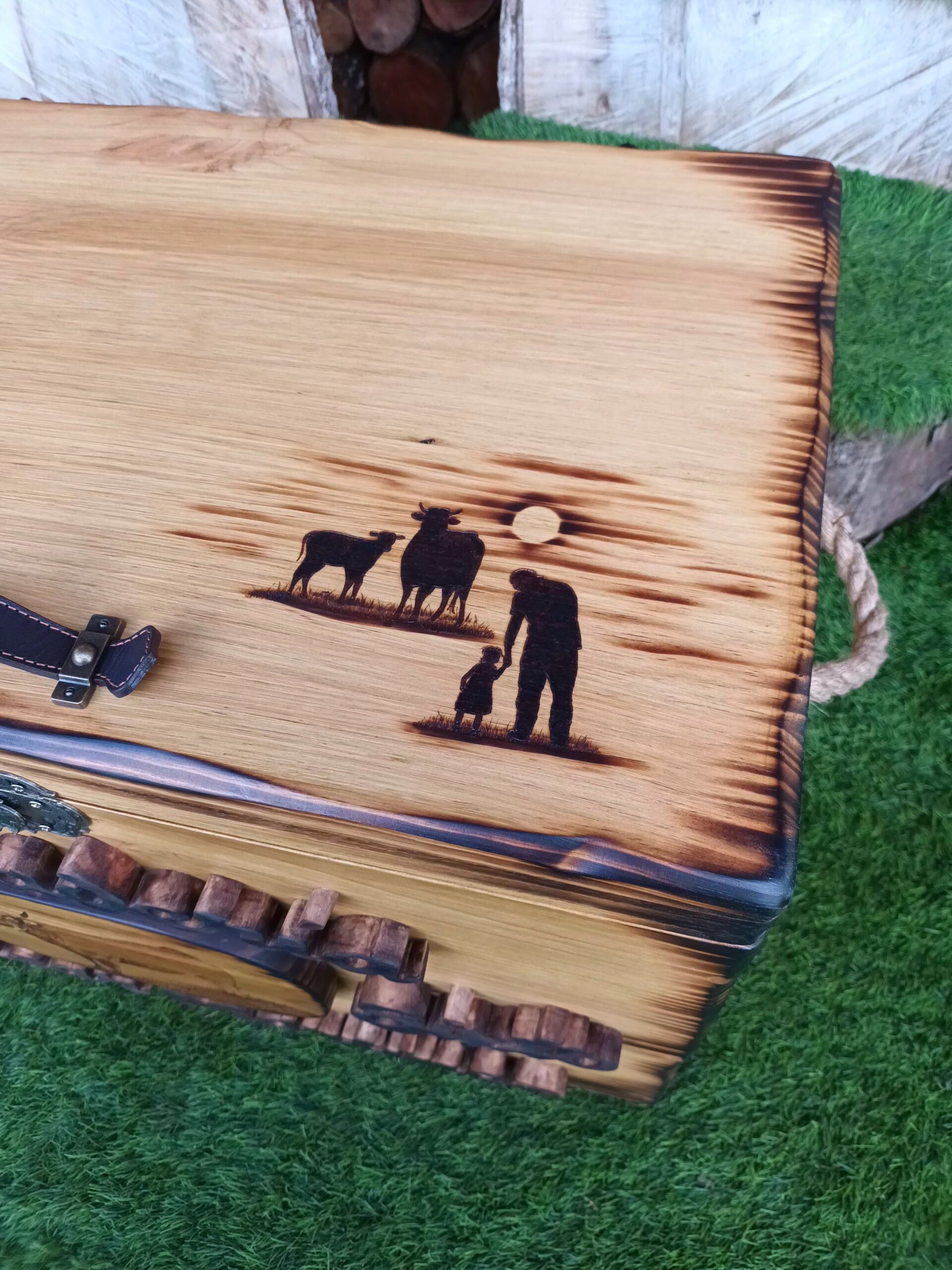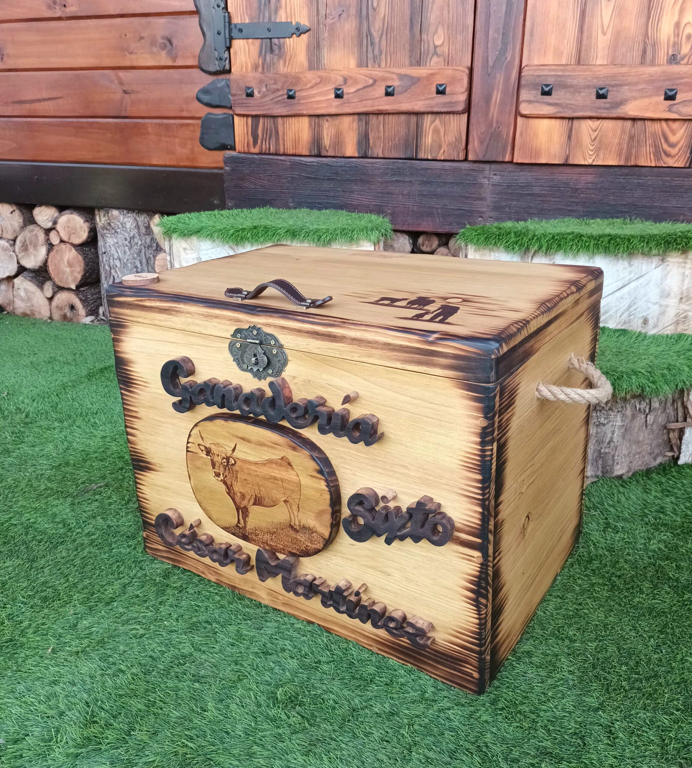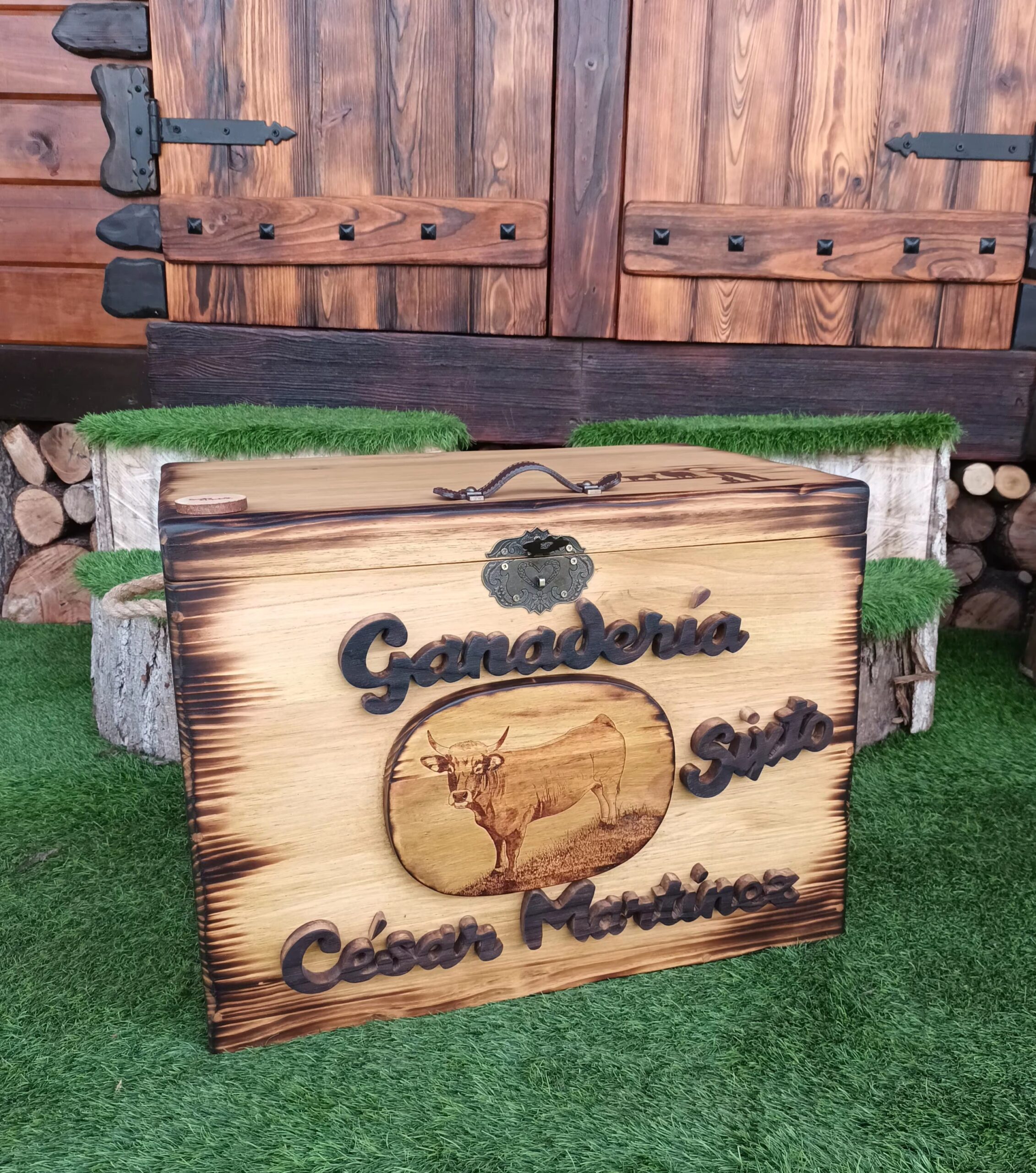 Un baúl único para que César guarde todas sus cosillas cuando va a las ferias de ganadería de su zona .