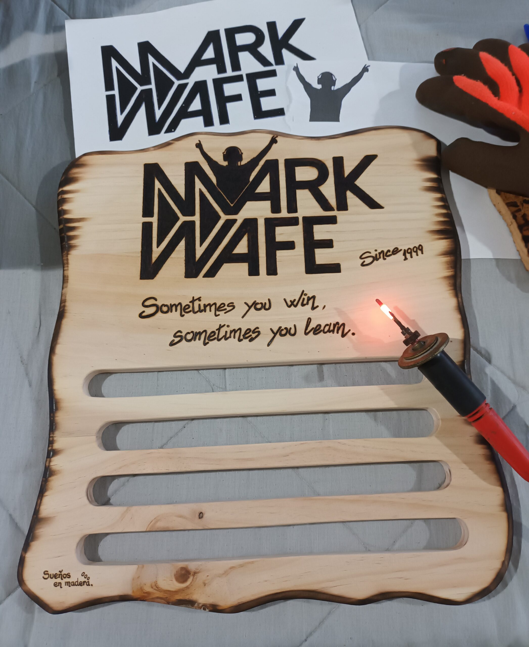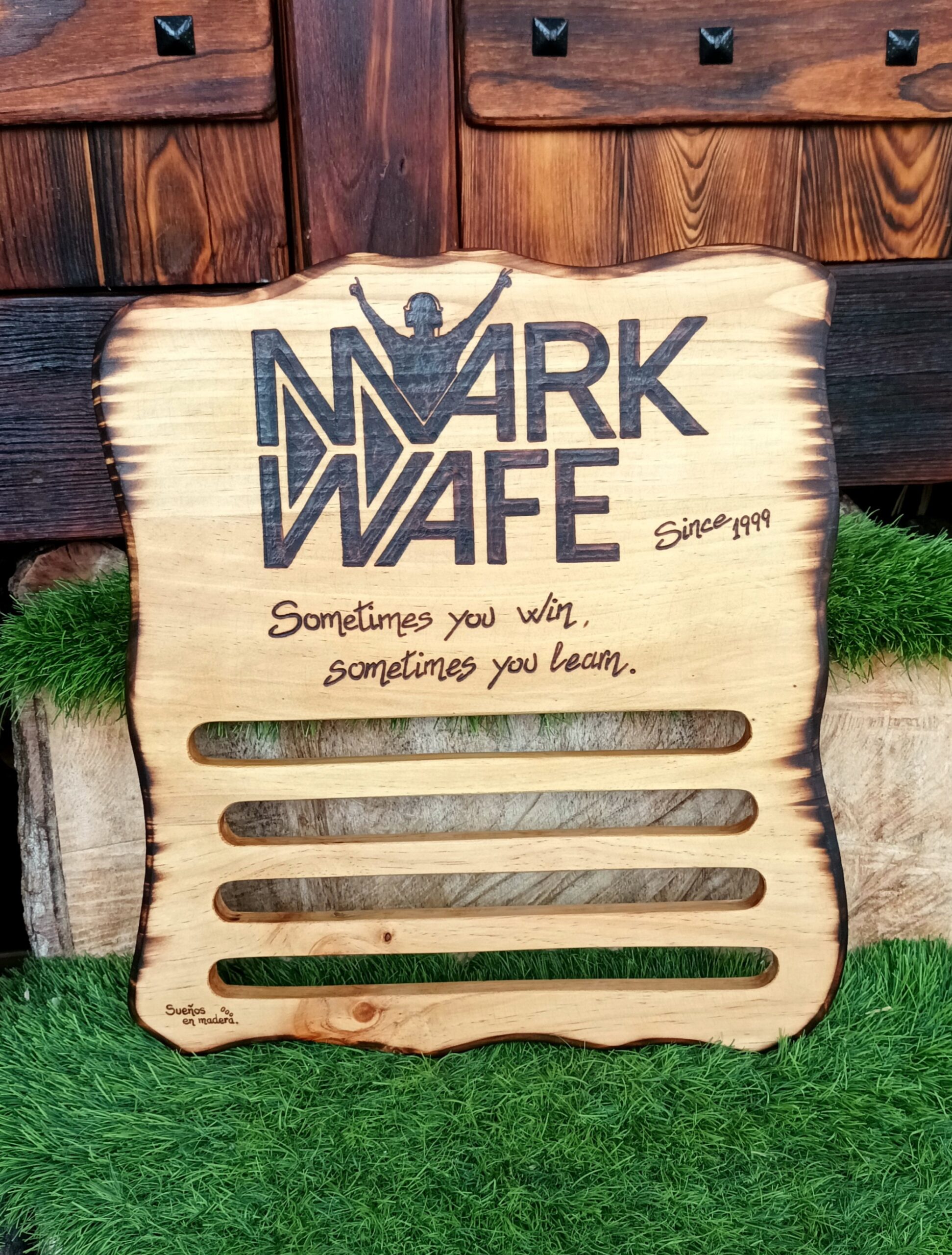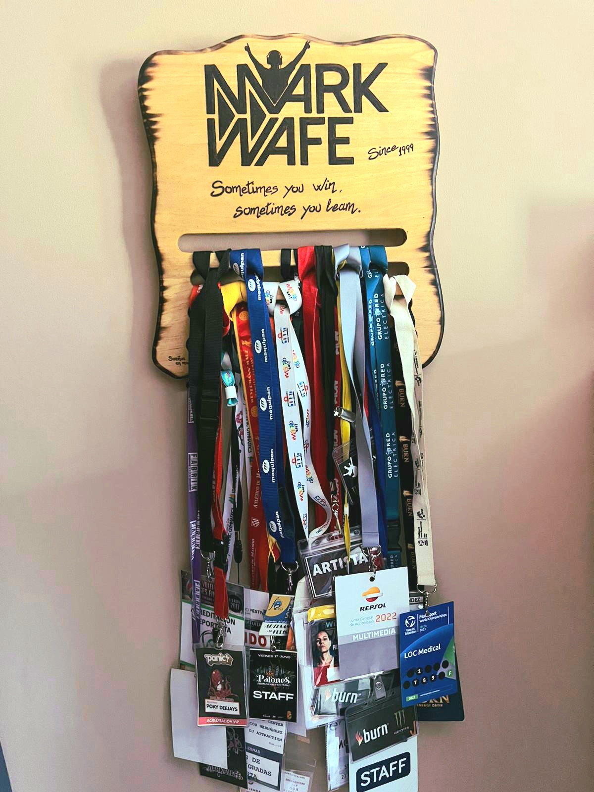 Su chica vio los medalleros de Sueños en madera y se le ocurrió que podían valer perfectamente para Mark, que colecciona todos los pases o acreditaciones donde le llaman para hacer sus sesiones.