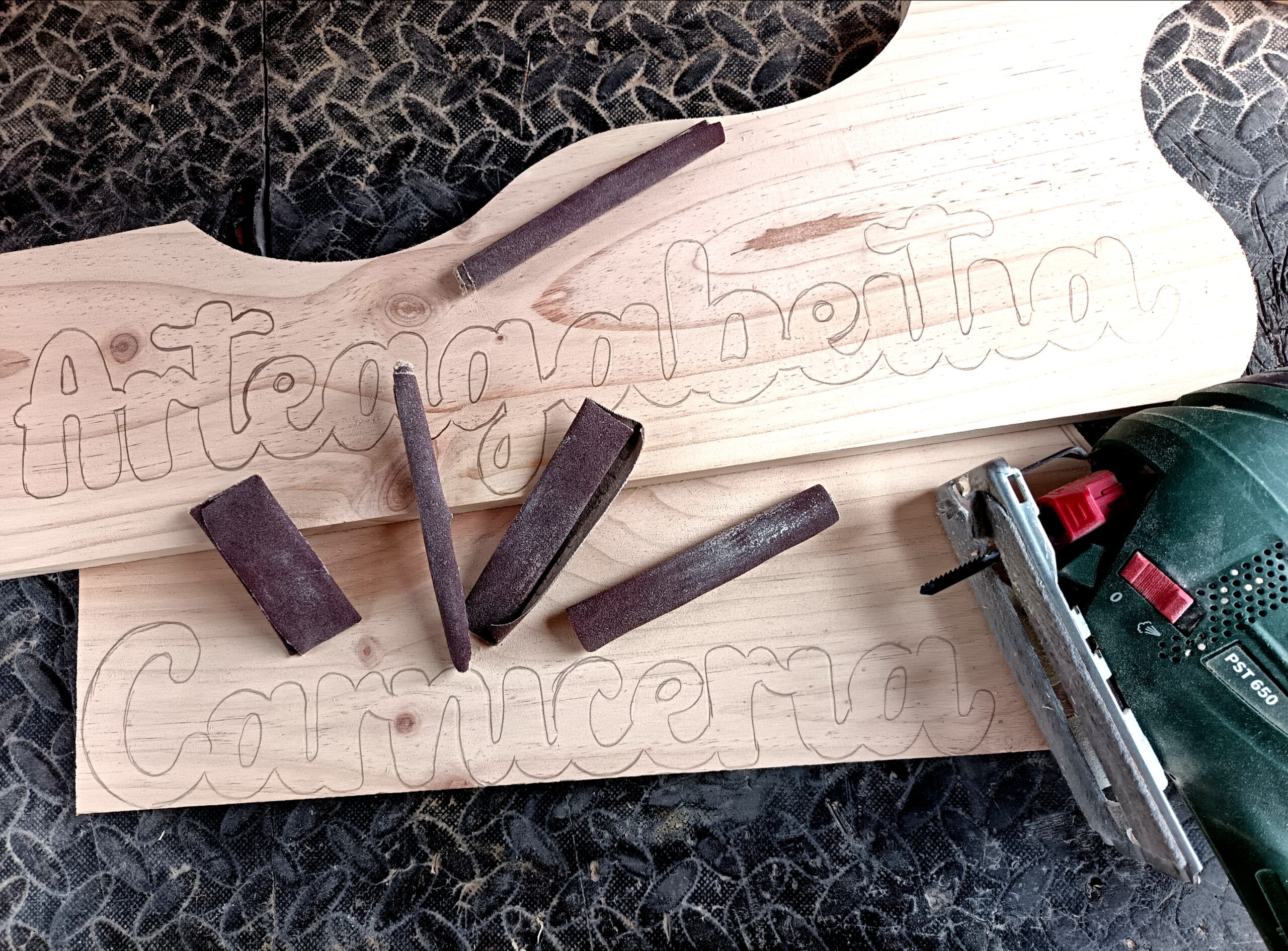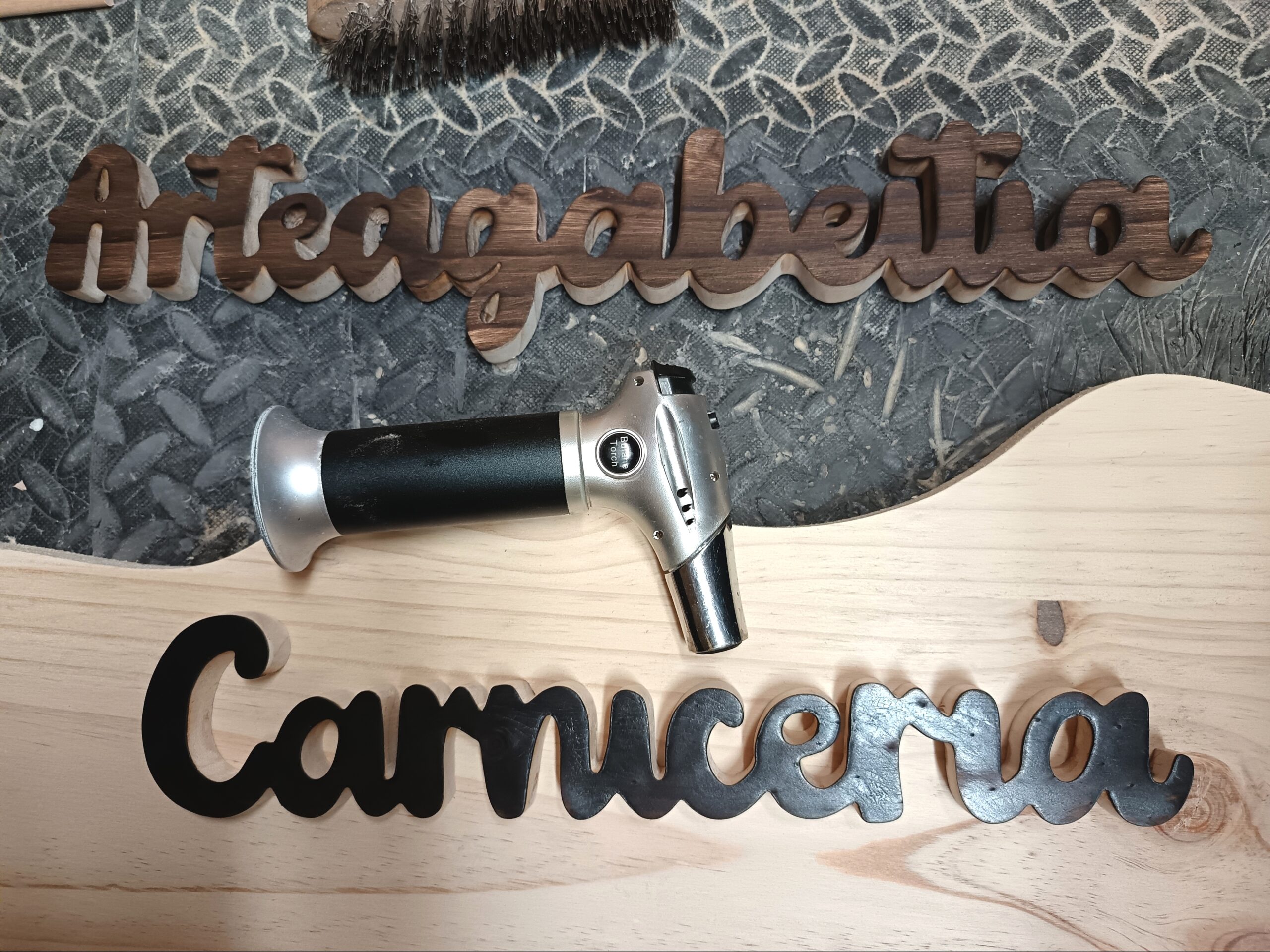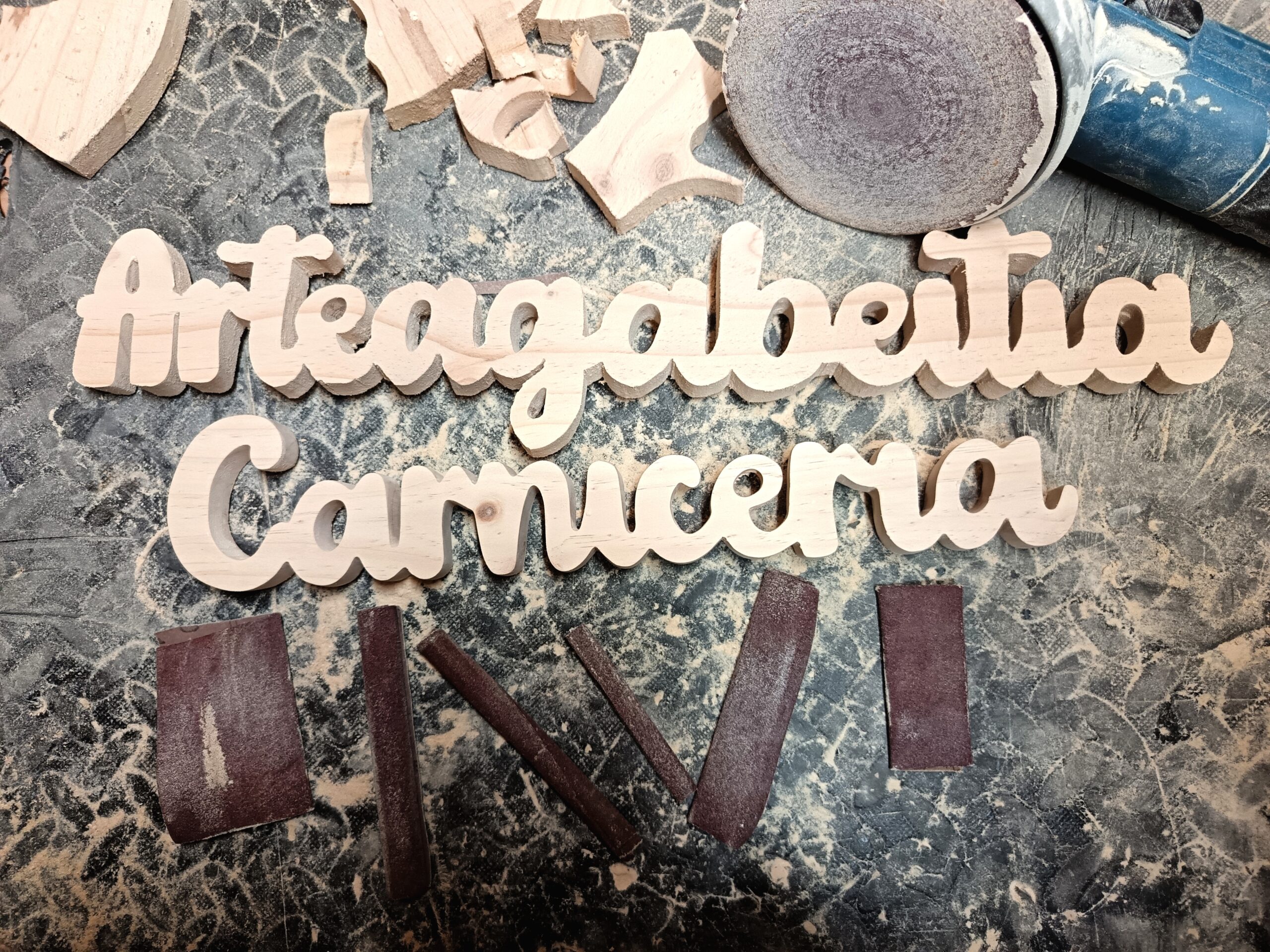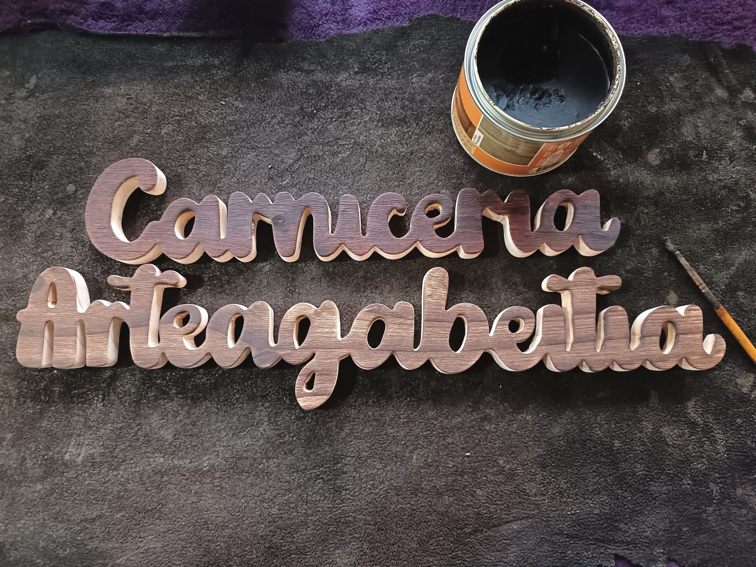 Así que nos pusimos manos a la obra con las ideas que ella ya tenía bastante claras y yo enseguida capté, buscamos una letra chula y ... Salió este precioso cartel que ya lucen con orgullo desde hace días a la vista de todo el que entra a la Carnicería Arteagabeitia.
