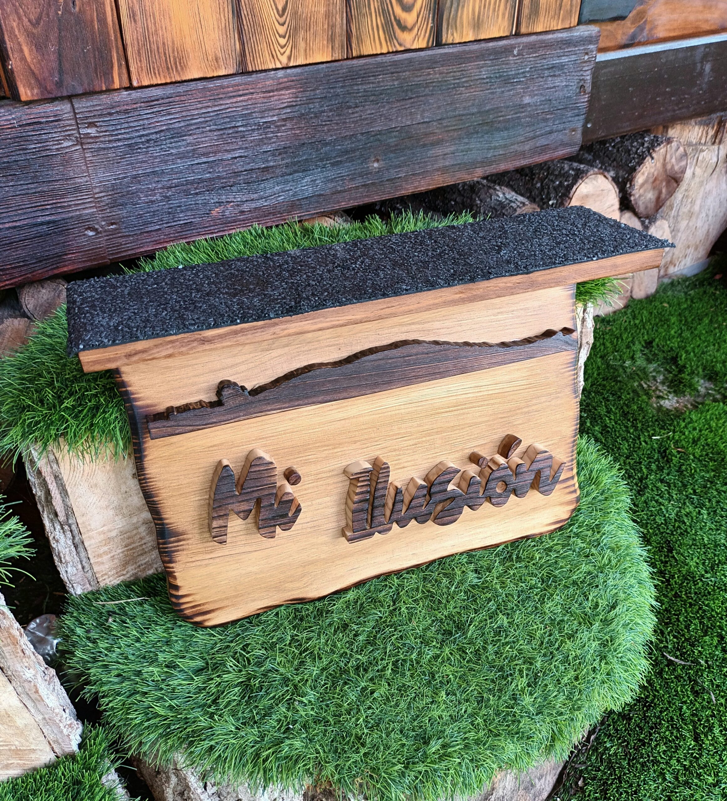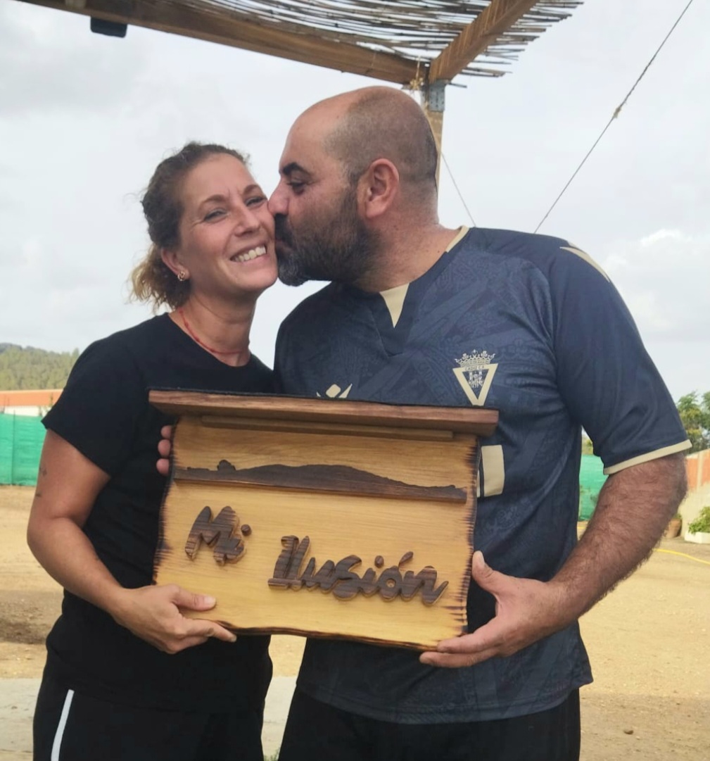 Rebeca quiso dar una sorpresa a su marido con un cartelito para su casita en el campo, algo con lo que los dos soñaban hacía tiempo y terminaron consiguiendo, un cartelito con el nombre que le han puesto a su finquita y como detalle, el cerrito que tienen a la vista desde su casita.