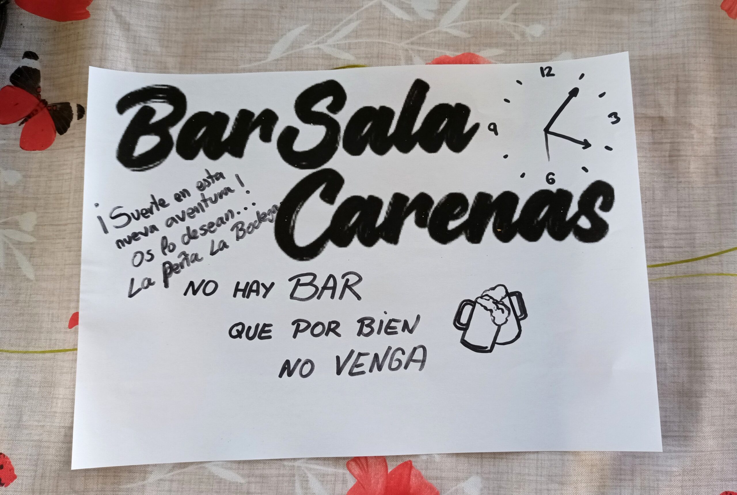 El detalle del cartelito para el interior corrió por parte de la Peña la Bodega, una familia de amigos que quisieron darles un empujón y una bonita sorpresa a este par de chicas valientes.