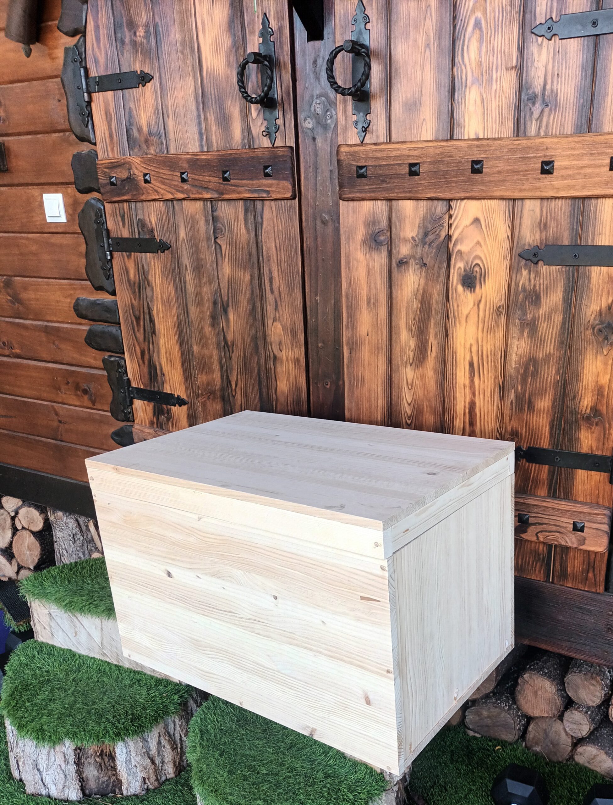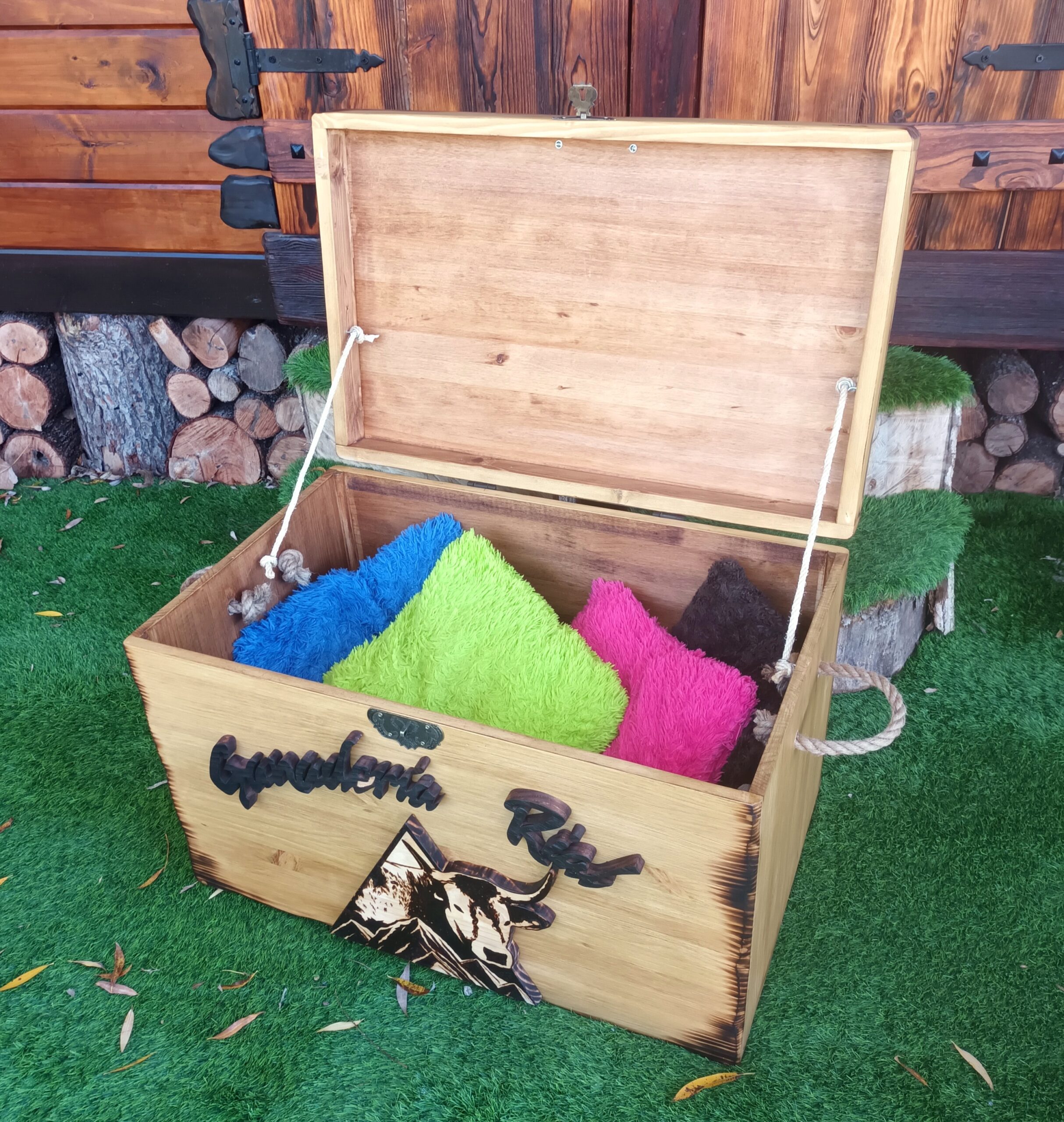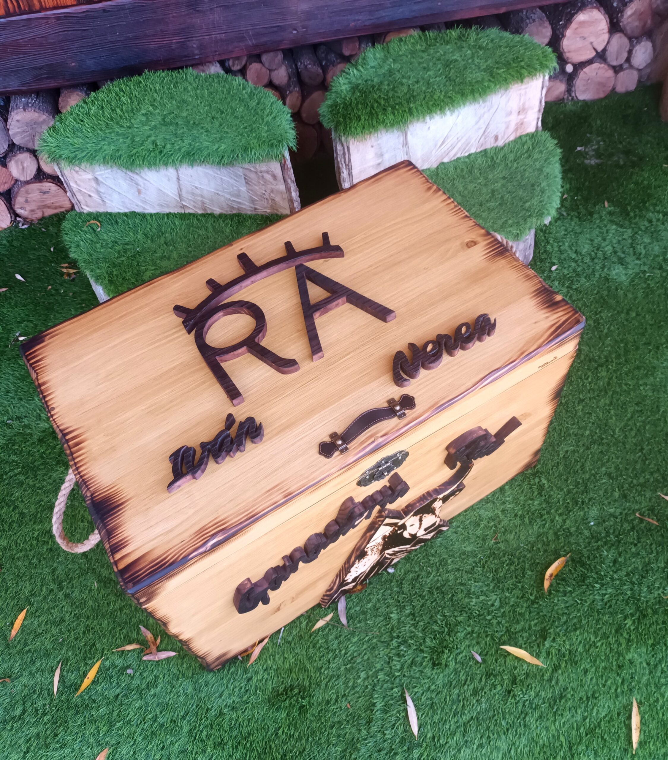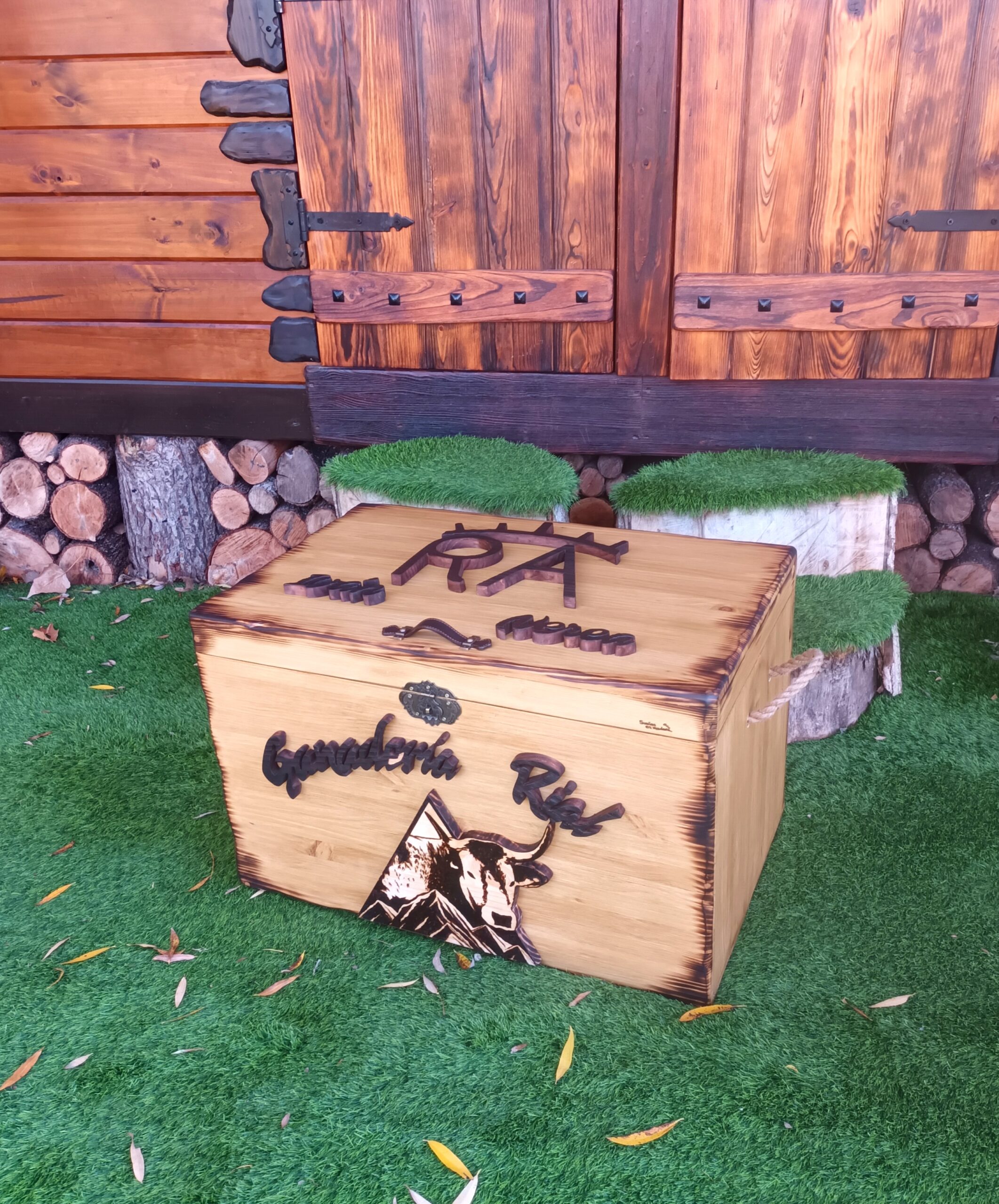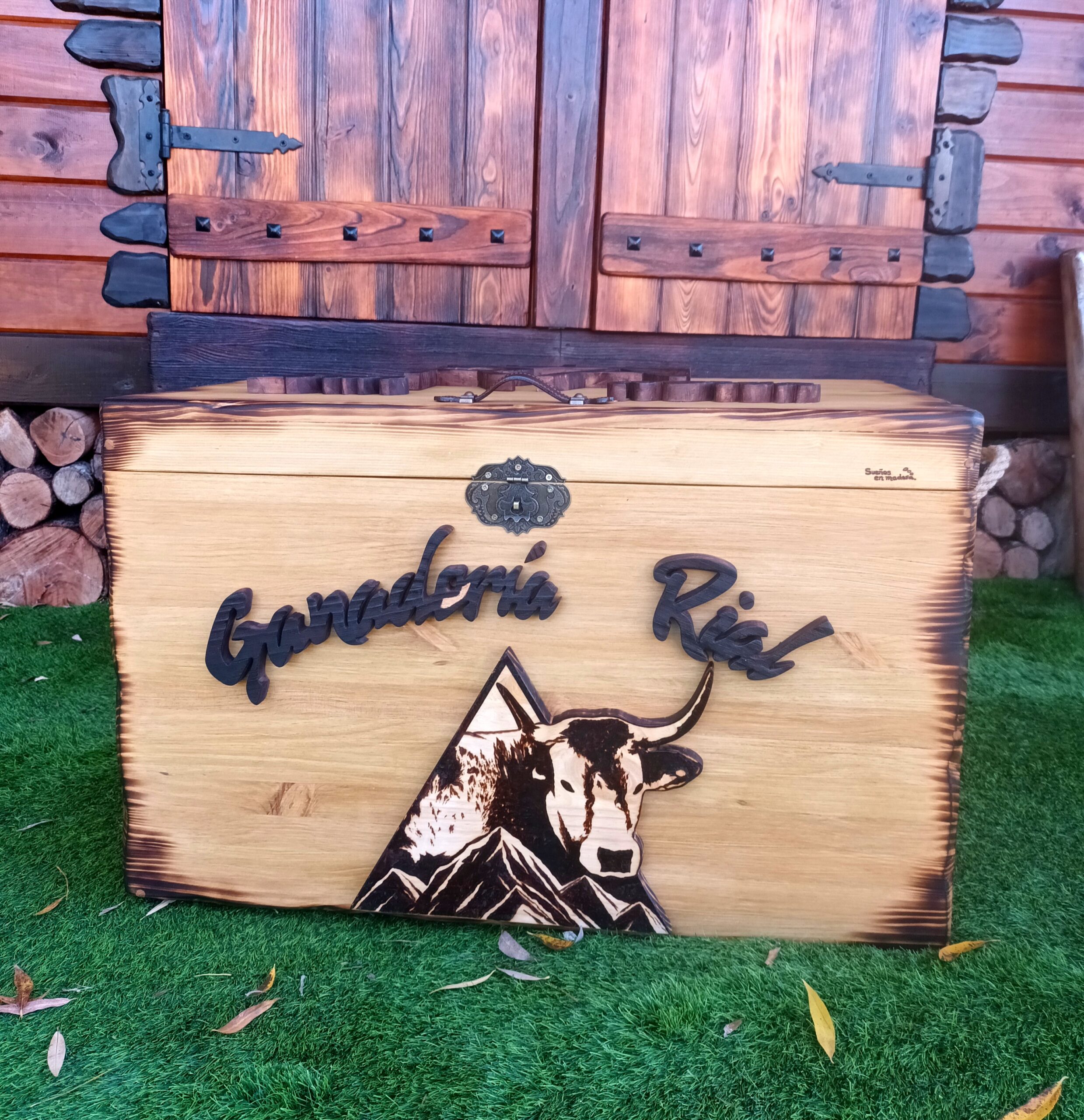 Con este precioso baúl se despertaba una mañana de Reyes Iván, Nerea, su chica; tuvo la idea de hacer un baúl único para cuando van a las ferias de ganadería de su zona, para meter todos sus cacharrillos pero no de cualquier forma, jejeje.